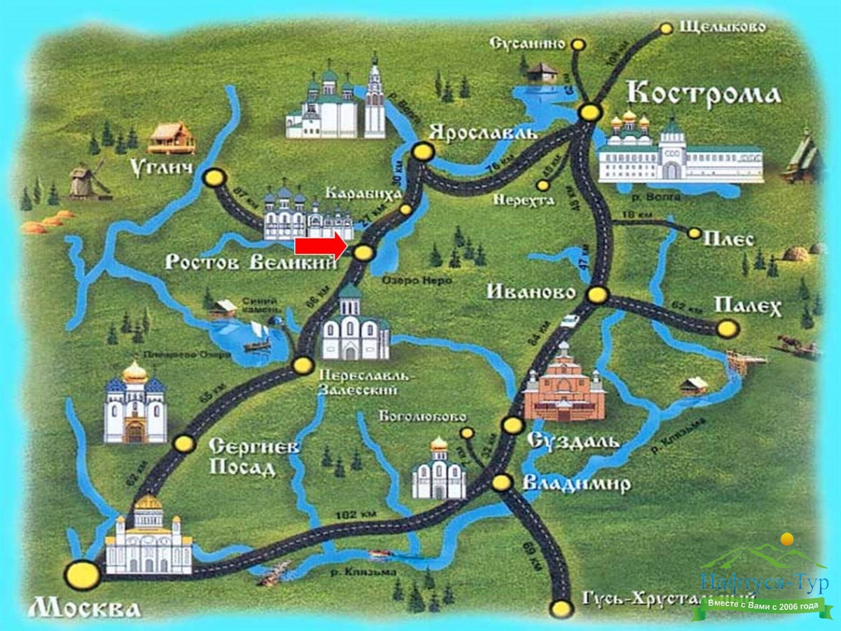 Во время круиза по Золотому кольцу туристы посетят множество исторических городов, узнают много нового об истории и культуре России. Среди главных городов и достопримечательностей, которые посещают на круизе по Золотому кольцу, можно выделить Сергиев Посад, Ярославль, Кострому, Ростов Великий, Переславль-Залесский и другие.