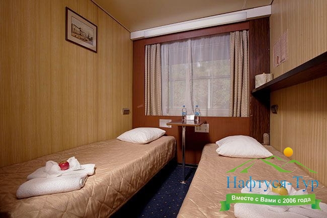 Однокомнатная одноярусная каюта, рассчитанная на размещение двух человек, площадь каюты до 7,9 кв.м.