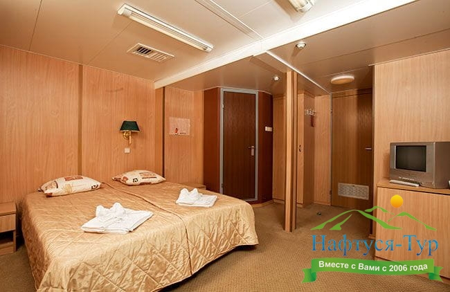 Двухкомнатная каюта с удобствами, рассчитанная на размещение до двух или трех человек, площадь каюты до 26,6 кв.м.