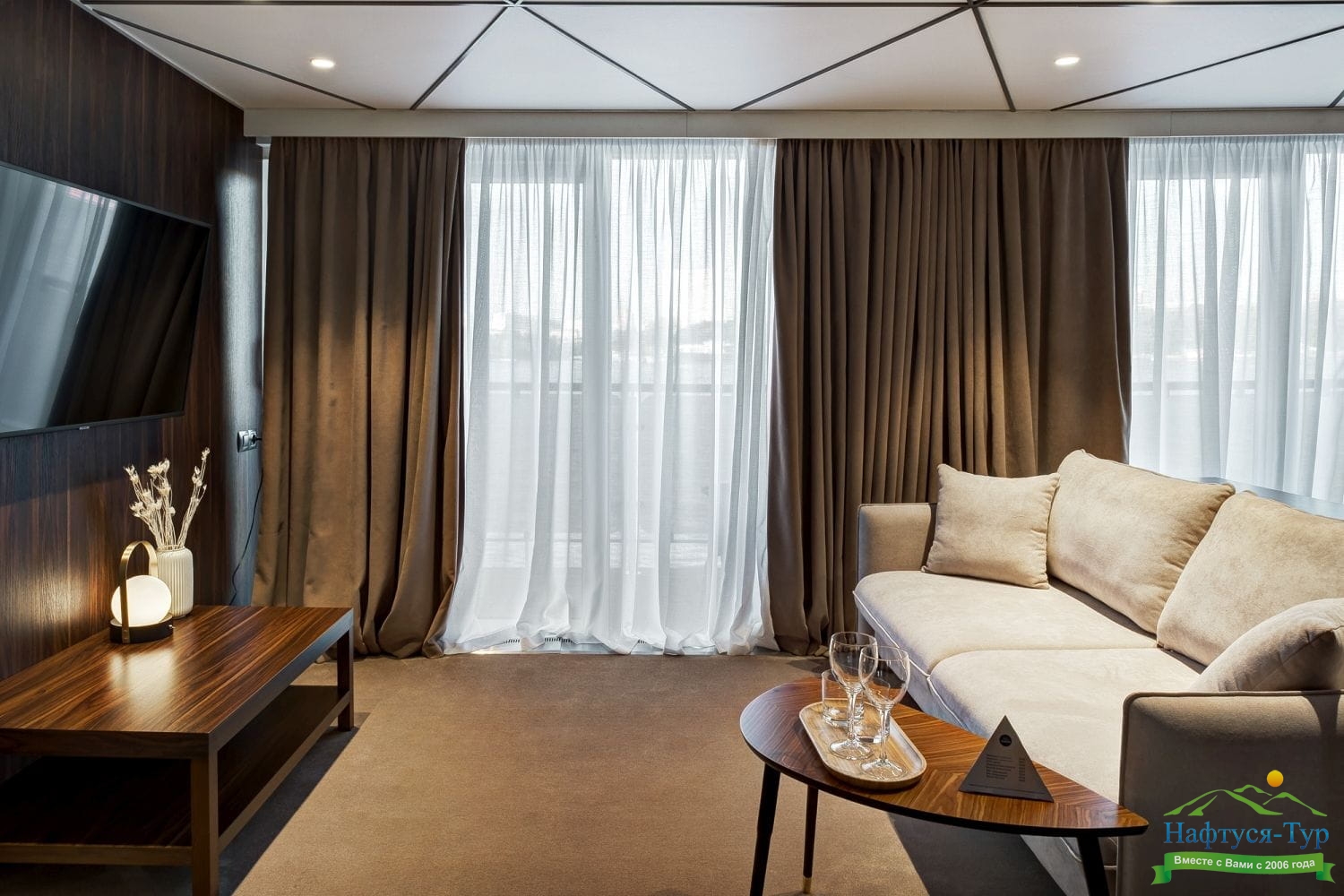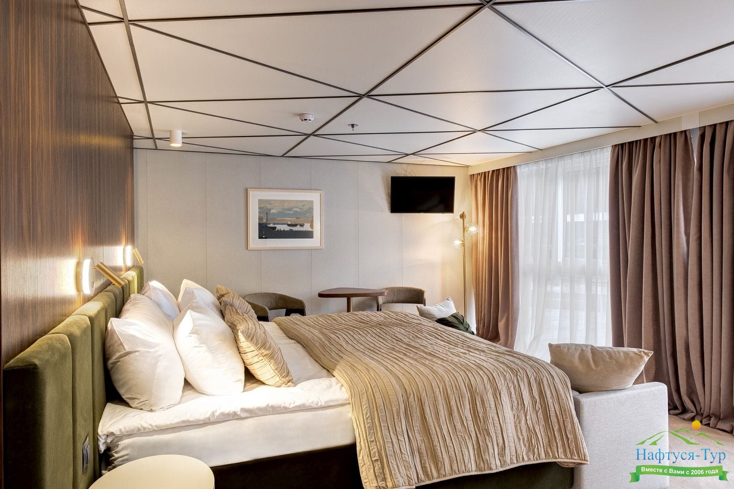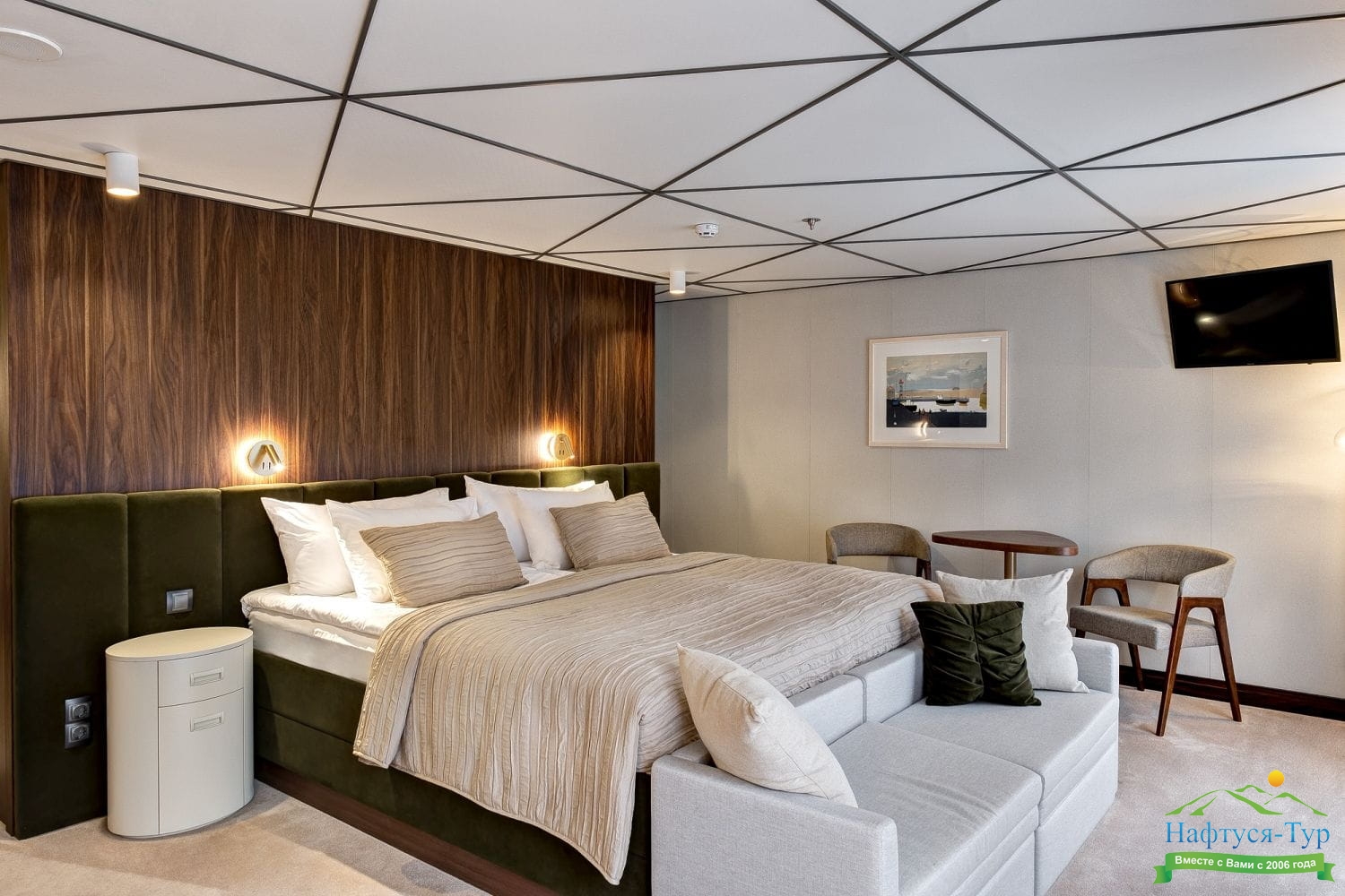 Люкс двухместный - Просторные каюты с двуспальной кроватью и мягкой зоной для отдыха