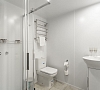 Расширена площадь санблока, отдельный душ, санузел, кондиционер.