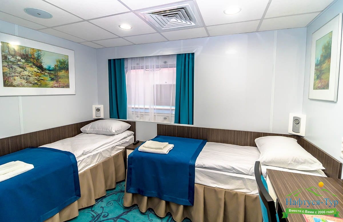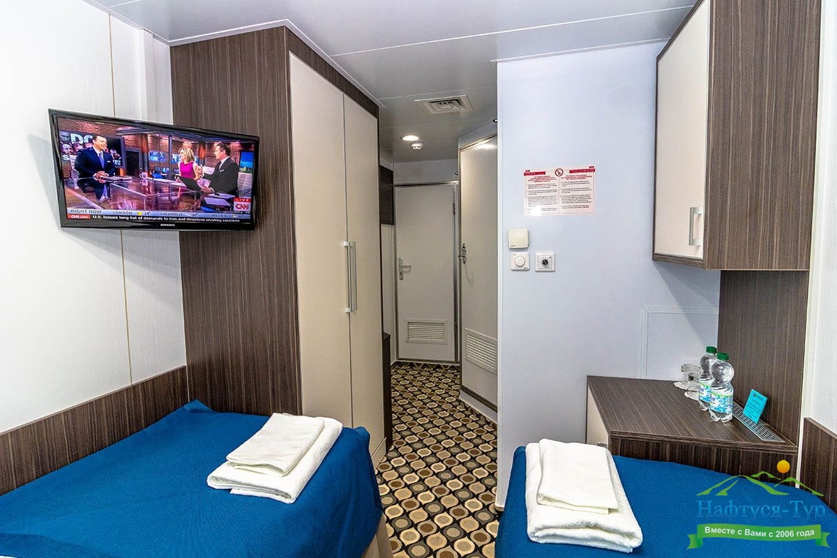 Просторная однокомнатная каюта с удобствами, рассчитанная на размещение двух человек