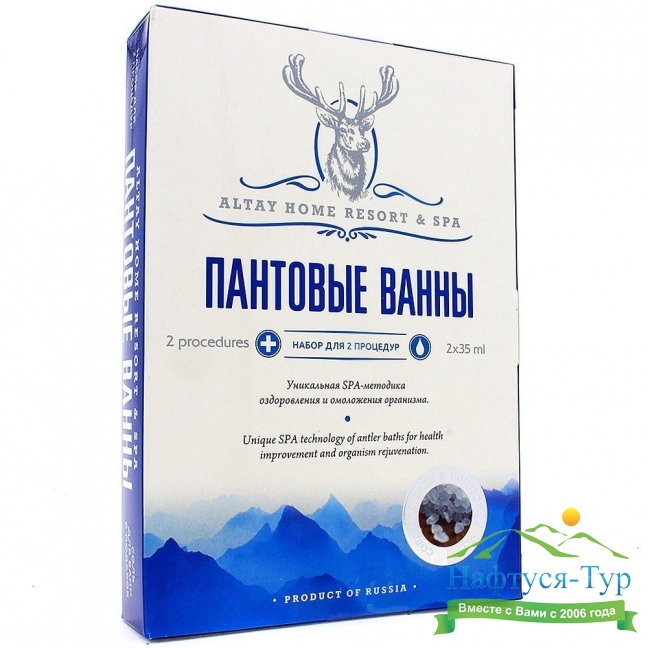 Ванна пантовая – лечебная SPA-процедура, при которой тело пациента погружается в воду с растворенными в ней целительными средствами, получаемыми из молодых рогов (пантов) оленей (маралов). В процедурах для приготовления необходимого раствора могут использоваться как свежий экстракт из вываренных рогов, так и БАД-концентрат. Среди отечественных санаториев данную методику наиболее часто предлагают здравницы Алтайского края, причем они имеют возможность использовать свежий экстракт.Пантовая ванна – это не только полезная, но и приятная процедура. Считается, что регулярное принятие таких ванн (курсы из 10 процедур четыре раза в год) обеспечивает значительный эффект омоложения организма. Помимо этого методика используется при лечении заболеваний суставов, желудка, кожи, остеохондрозах и остеоартрозах, неврозах, кардиологических нарушениях, болезнях мочеполовой системы, включая восстановление потенции, а также в других случаях.