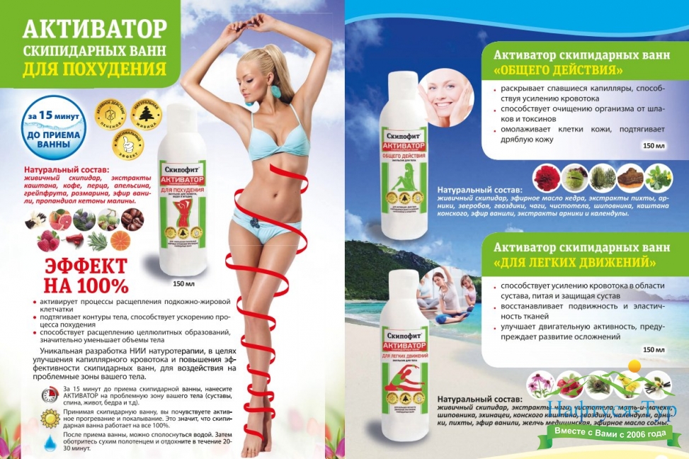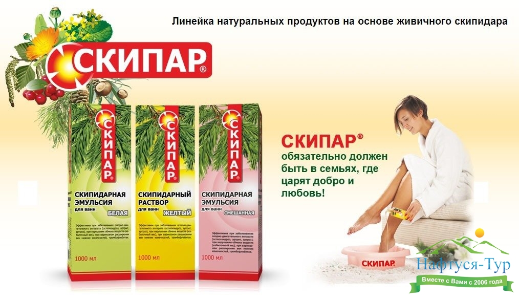 Ванна скипидарная – метод физиотерапии, основанный на использовании благотворного влияния на человеческий организм биологически активных составляющих живичного скипидара (получают из смолы деревьев хвойных пород). Компоненты живичного скипидара в совокупности с повышенной температурой воды во время проведения процедуры вызывают раздражение кожных рецепторов, а также оказывают антисептическое воздействие. В результате открываются поры, улучшается микроциркуляция крови в коже и подкожных слоях тканей, что обеспечивает их очищение от шлаков и тонизирующий эффект.В санаториях нашей страны используют в лечебных курсах желтые и белые эмульсии для скипидарных ванн. Температура воды в ходе проведения процедуры должна возрастать с 37 градусов до 42 (желтая эмульсия) или 39 градусов (белый скипидар). Добавим, что для нормализации артериального давления применяют ванны со смешиванием белой и желтой эмульсий. К перечню основных заболеваний, при которых назначают скипидарные ванны, относятся: радикулит, остеохондроз, ревматоидный артрит, остеоартроз, подагра.