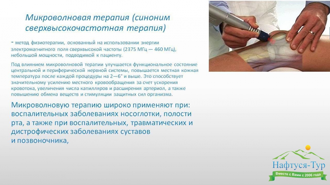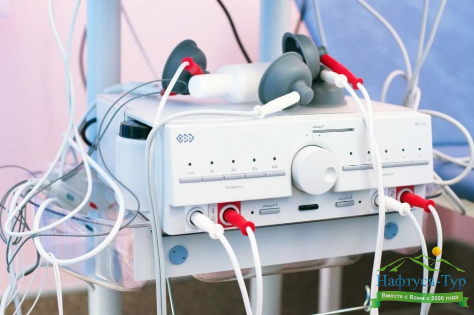 Электролечение (электротерапия) – группа методов физиотерапии, основанных на использовании благотворного воздействия электрического тока на организм пациента. К этой группе методов относят как те процедуры, в которых к организму человека непосредственно подводят электрический ток, так и те, в которых используется электромагнитные поля, а также их сочетания. Под воздействием указанных полей в тканях и органах человека также возникают электрические токи, что позволяет изменять функциональное состояние отдельных органов и всего организма в целом. В ряде случае электролечение сочетается с одновременным вводом медикаментозных средств (электрофорез).В санаториях используется множество видов электролечения: гальванизация, фарадизация, дарсонвализация, индуктотермия, диадинамотермия, УВЧ-терапия, магнитотерапия и многие другие. Спектр применения методов электротерапии очень широк и охватывает профили заболеваний сердечнососудистой, нервной, дыхательной систем, ЖКТ, мочевыводящей путей, опорно-двигательного аппарата, косметологию.