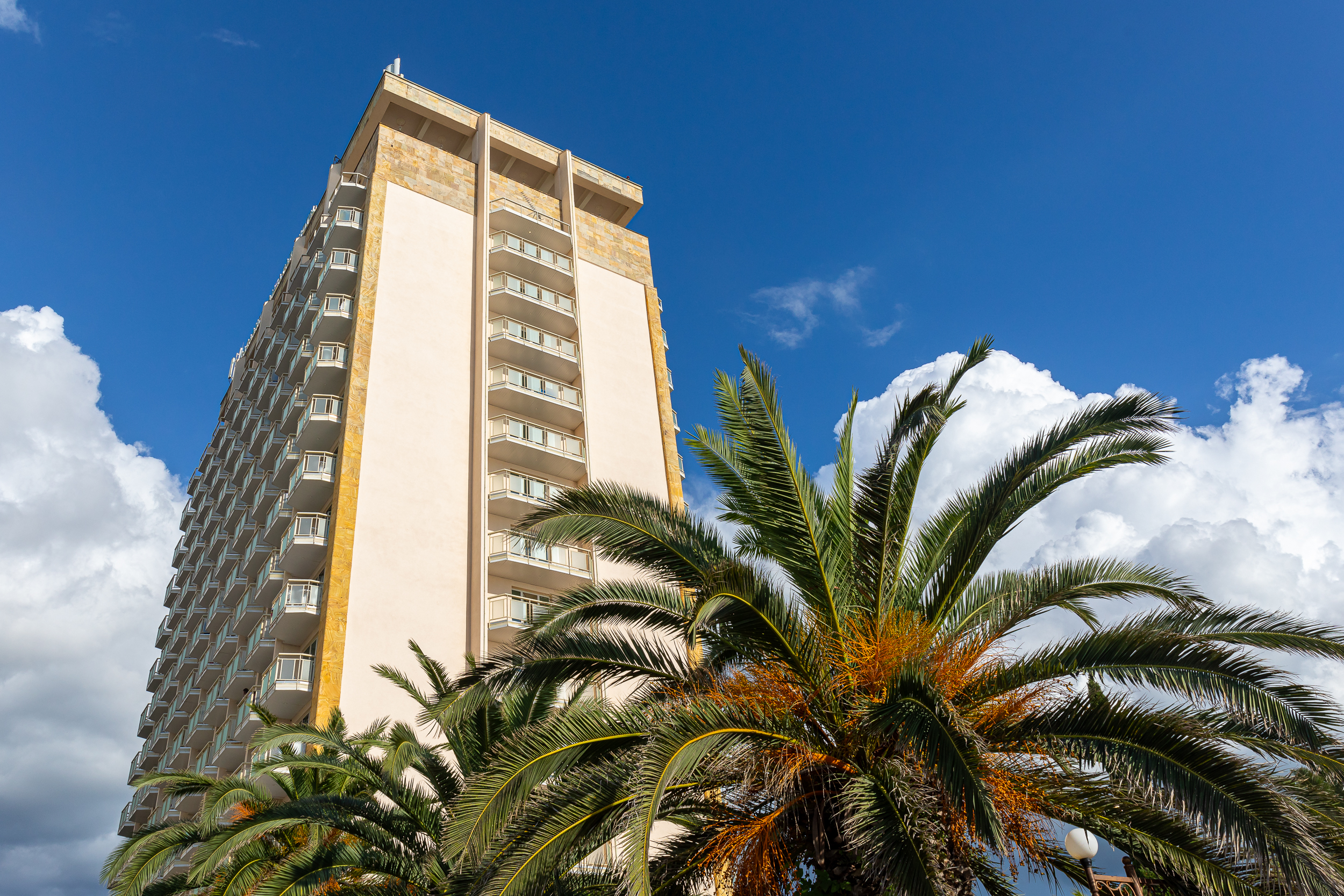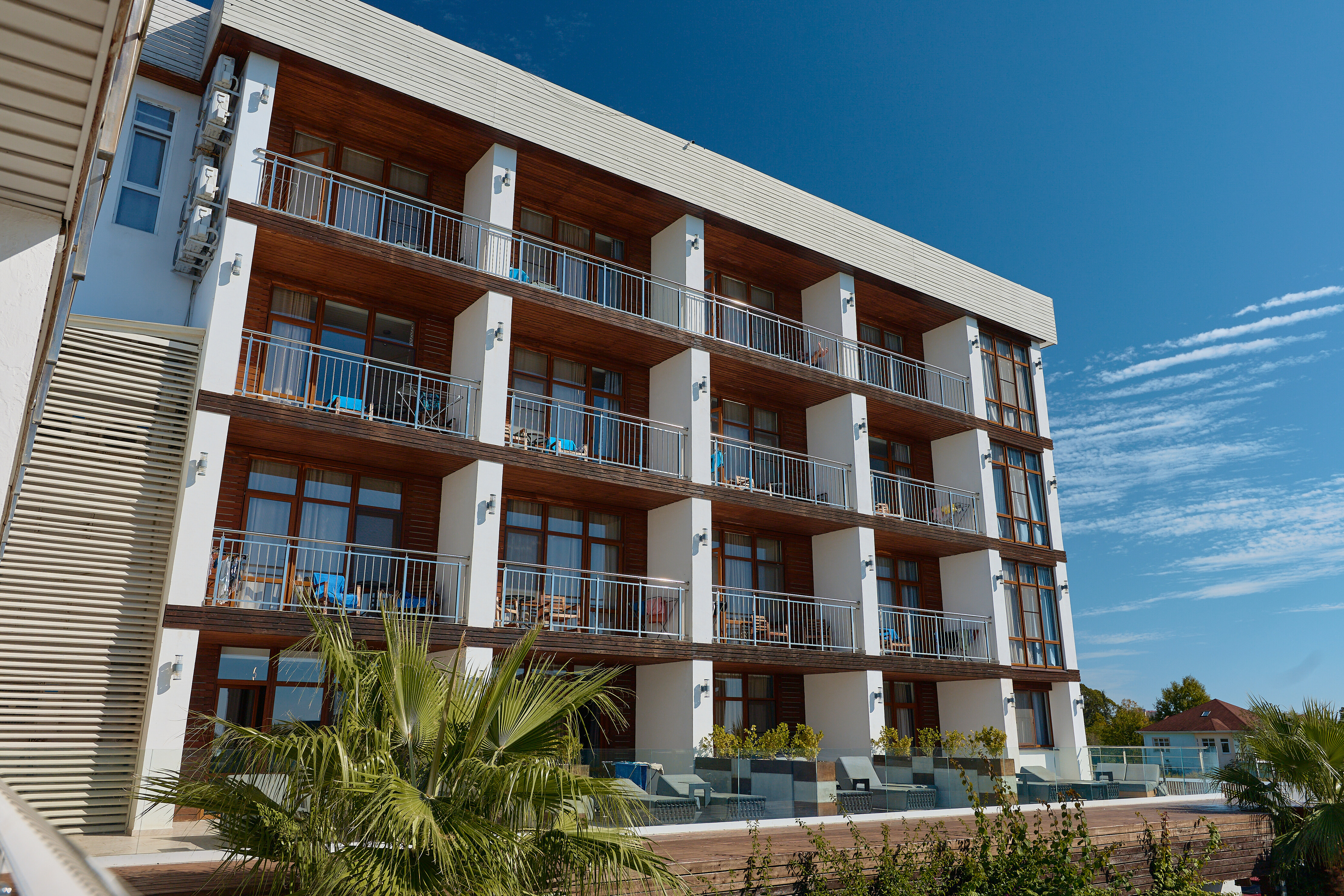 Гостиничный комплекс занимает территорию на первой береговой линии и состоит из 5 жилых корпусов разной этажности, первый и пятый корпуса оснащены современными лифтами. Обширный жилой фонд включает более 247 комфортабельных номеров разных категорий. Во всех номерах независимо от уровня комфорта есть собственный санузел с душем, кондиционер, плазменный телевизор и другая бытовая техника. В большинстве комнат предусмотрены балконы, откуда открываются красивые виды на побережье.