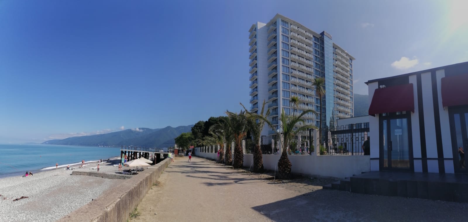 Если выбираете отель на берегу моря, то Жоэквара подойдет по вашему выбору, расстояния до моря 20 м и до ж/д и аэропорта Адлера 42 км.