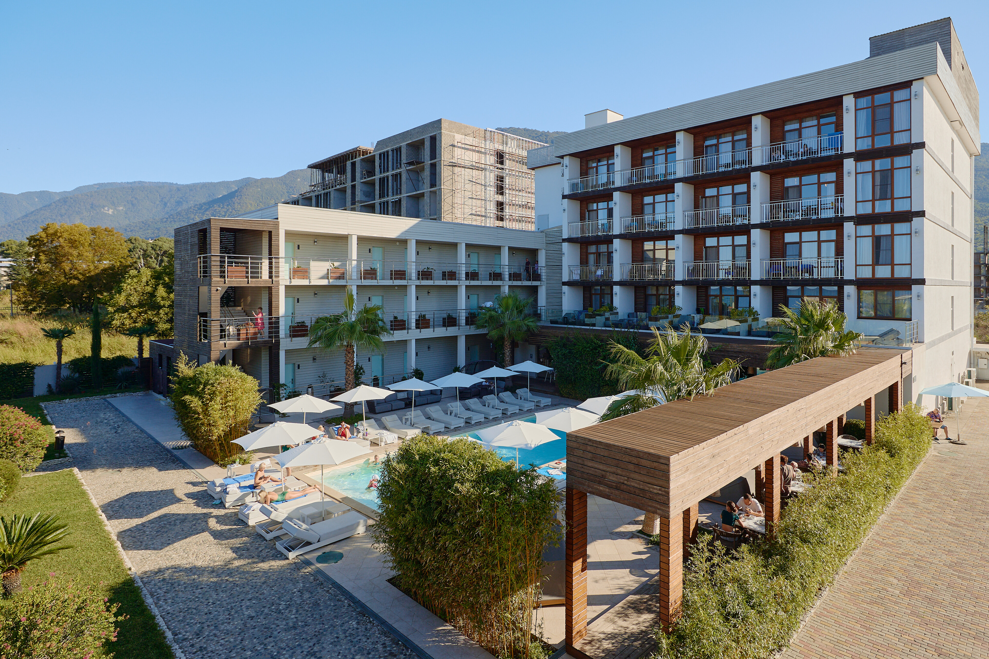 Новый отель «Sunrise Garden Hotel 3» для семейного отдыха, расположенный на территории Комсомольского парка на берегу Черного моря, в самой живописной части Старой Гагры.