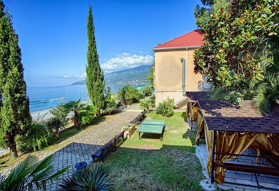Расположение: Первая линия у моря (20 м до пляжа), 100 м до центра Гагры, 40 км до аэропорта Адлер. Гагра