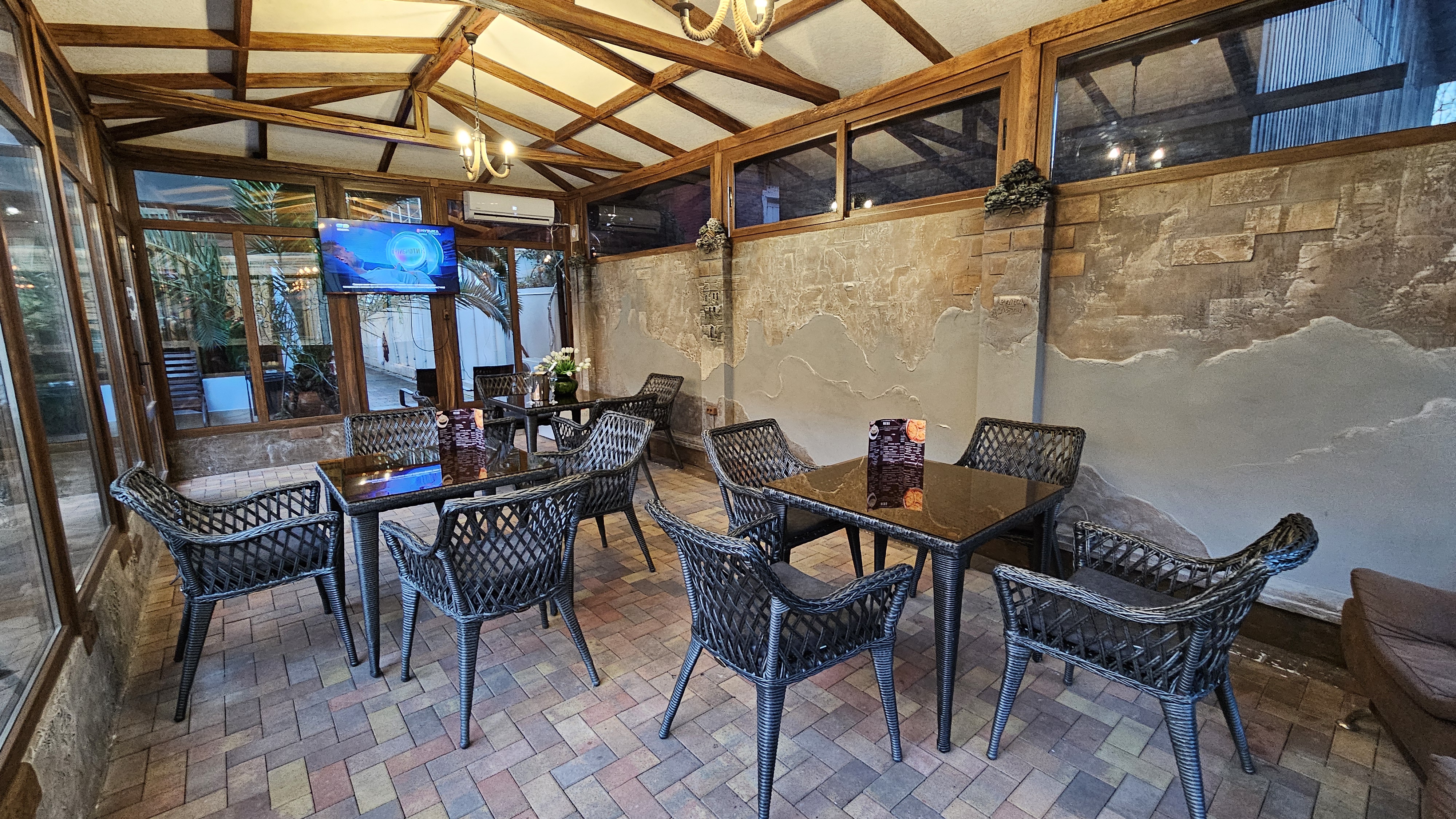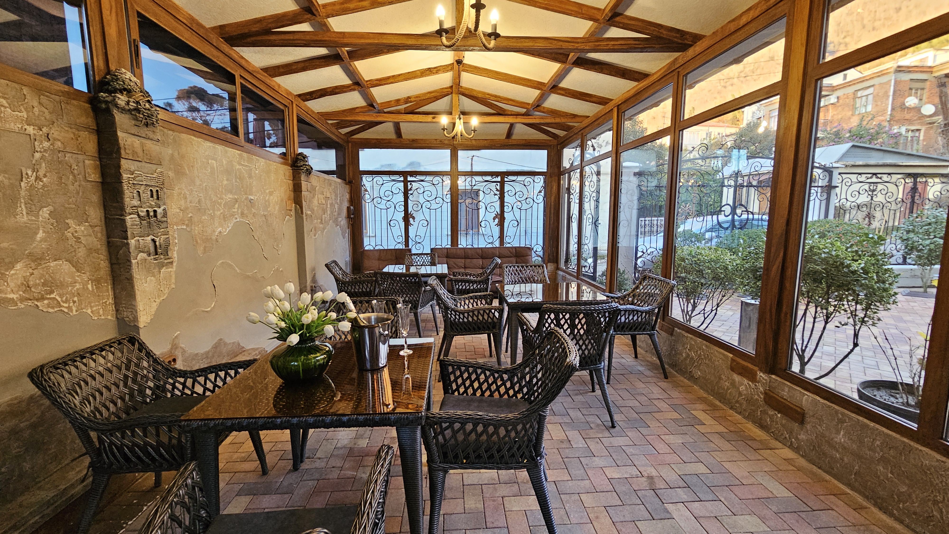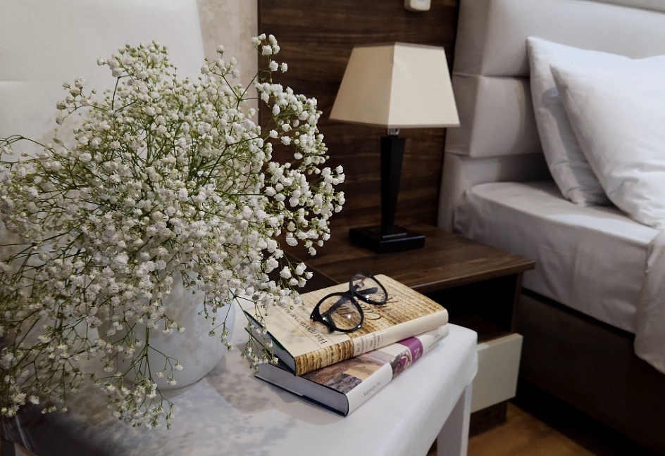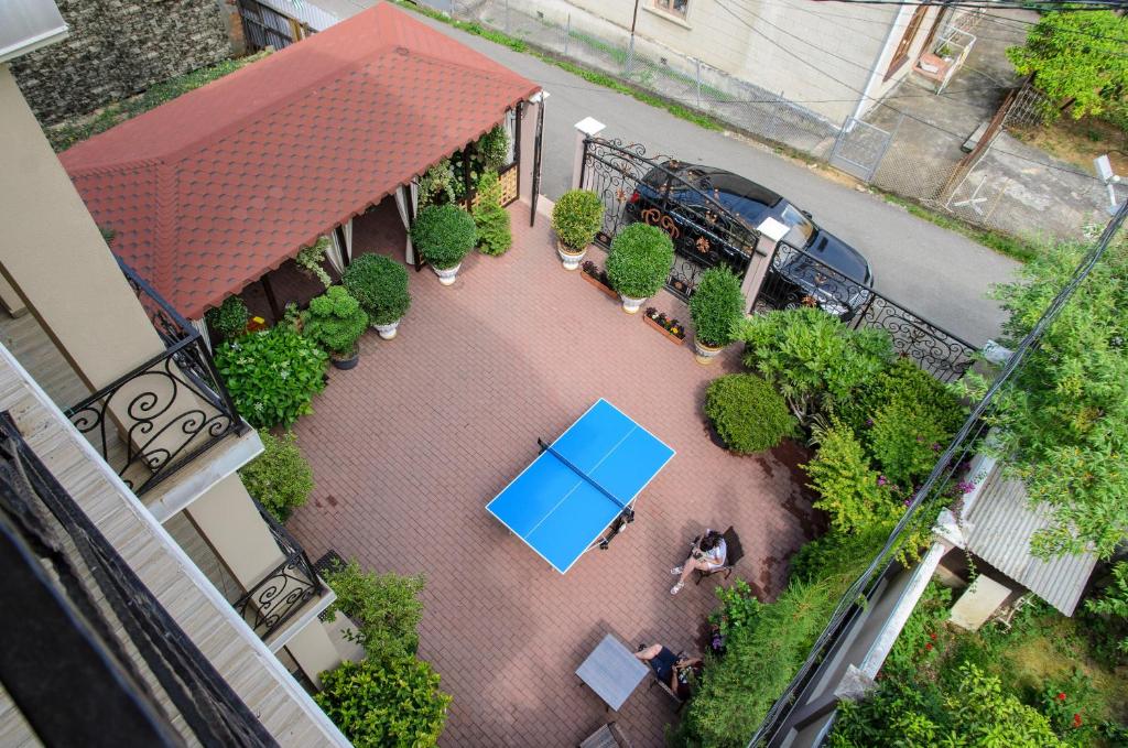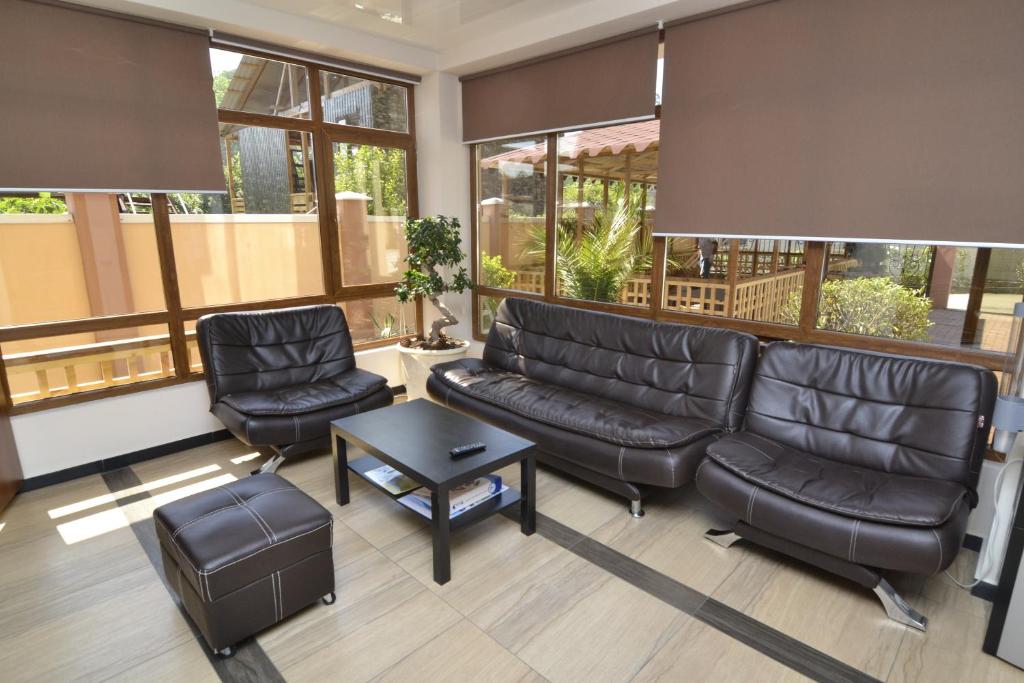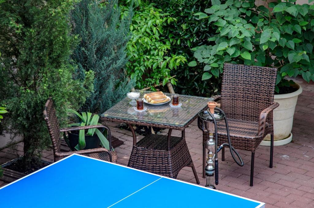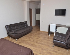 1. Плюсы: отель новый, это чувствуется и по номерам и по мебели - все безупречно от смесителей в раковинах (очень красивые) до постельного белья, оно белоснежно, полотенца меняют раз в 3-4 дня (мы отдыхали неделю, нам поменяли 1 раз). Территория отеля круглосуточно охраняется вневедомственной охраной. В холле или во дворе постоянно дежурит специалист. Персонал отеля все как один радушны и дружелюбны. Очень понравилось общаться с администратором Риммой, горничными Мартой и еще одной горничной, имени к сожалению не помню. Косметическая уборка номера протирка полов и вынос мусора каждый день (!) - девочки, спасибо! У нас в стоимость проживания входили завтраки. В очень стильном кафе каждый день бессменная Ирина. Она и накроет и выполнит любую просьбу. Большое ей спасибо. Столик в кафе закреплен за конкретным номером. Приходишь, садишься и тебе накрывают по стандартному меню (ни больше ни меньше): круглая булочка и кусочек масла, каша (меняется раз в 3 дня -это геркулес, рисовая, манная) и еще одно блюдо которое ежедневно чередуется - это или 2 блинчика со сметаной, или глазунья на 2 яйца, или омлет, или сырники. Чай, кофе каждый сам наливает на свое усмотрение из пакетиков. Дополнительно мы просили Иру и она приносила нам чашку молока, мы им кофе и чай разбавляли. Конечно не хватало сыра и овощей на завтрак (как пожелание). Есть WiFi!