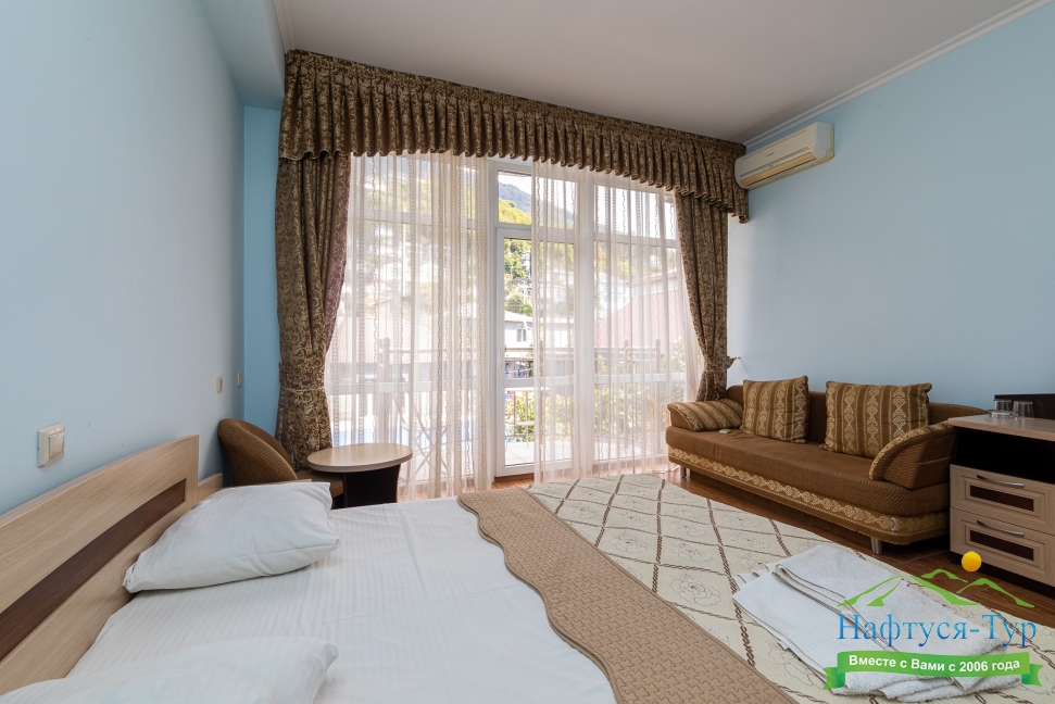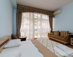 Останавливалась в данном отеле с мужем. Отлично провели время. Очень хороший отельчик. Расположен он в центре старой Гагры. Есть прекрасные номера с видом на горы и с видом на море. Комната просторная, везде порядок и чистота.