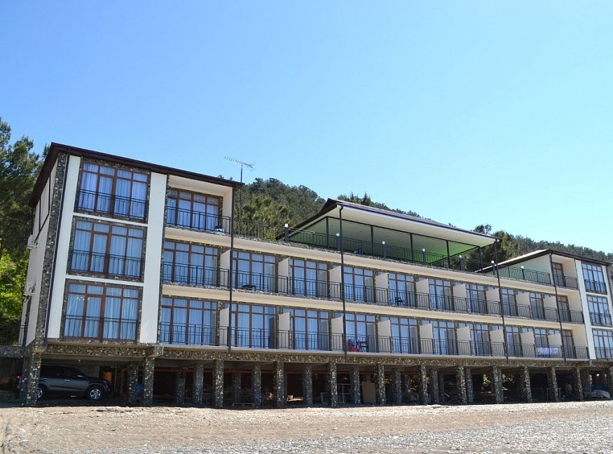 Отдыхали в середине июня 2016. Отелю (новому корпусу) нет ещё года, поэтому всё новое и чистенькое. Номера все с видом на море, с противоположной стороны коридор. Кормят вкусно: домашняя русская кухня с несколькими видами кавказских блюд.