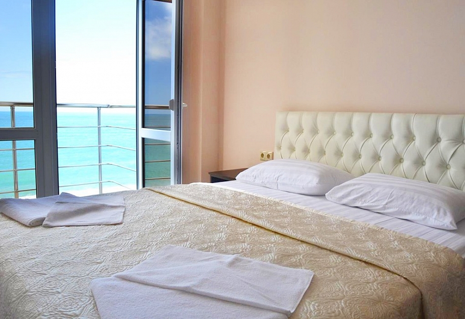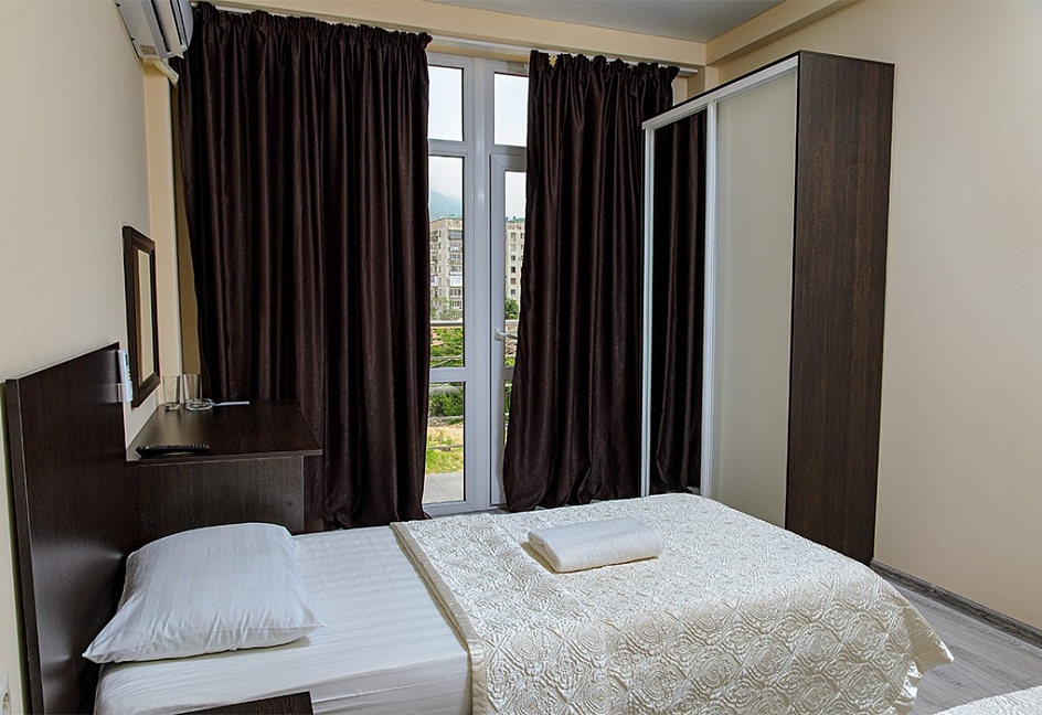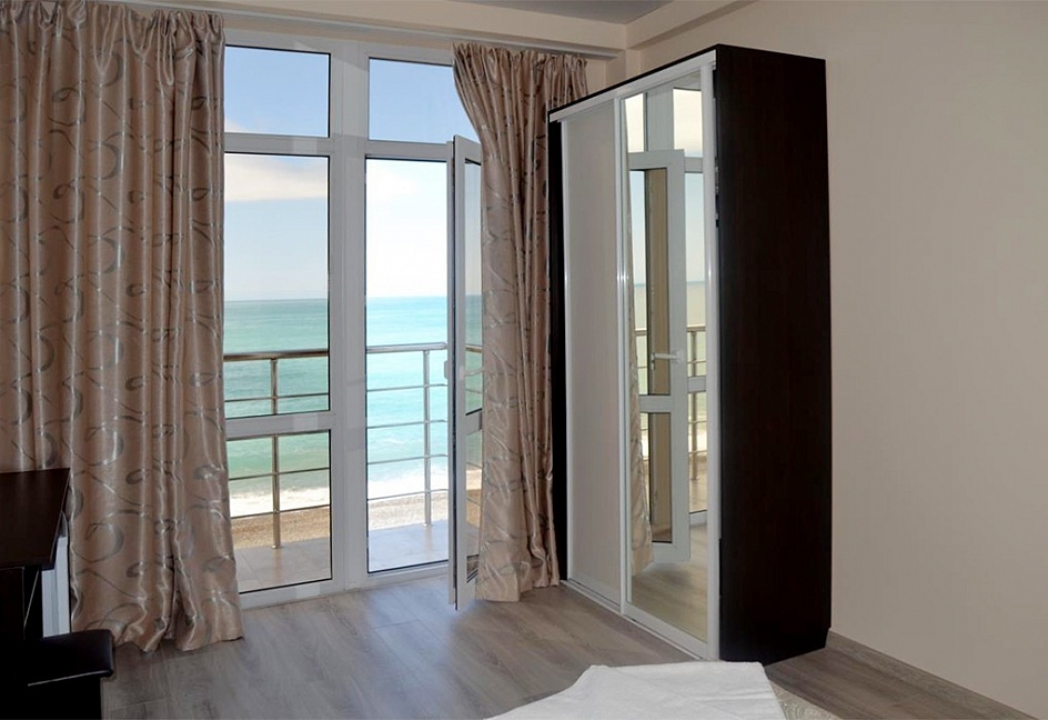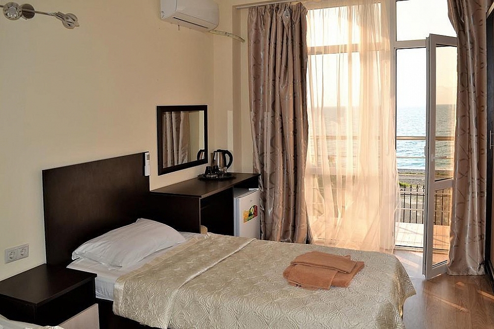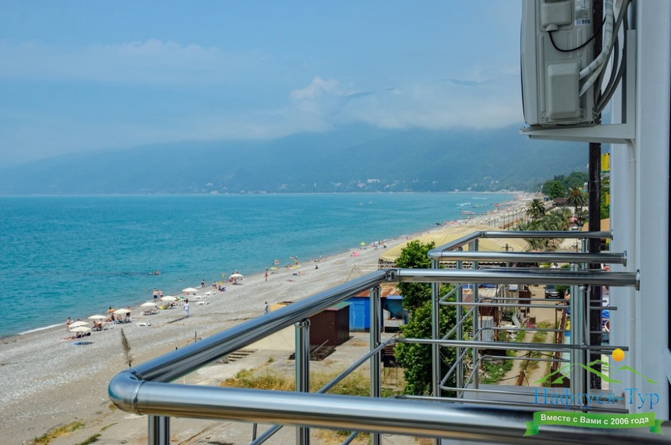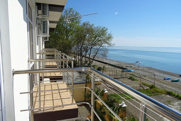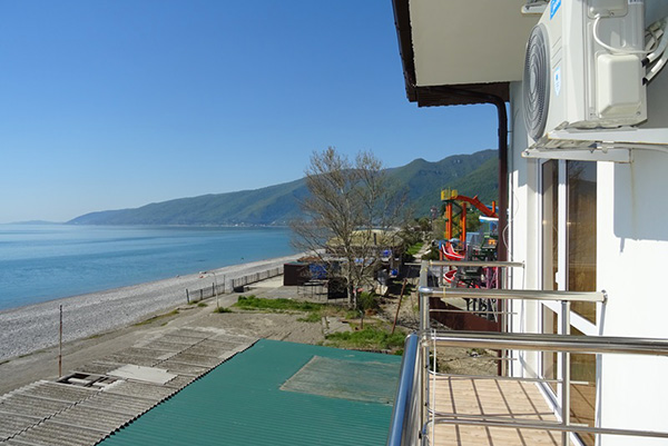 Расположение: Первая линия у моря (10 м до пляжа), 60 м до центра Гагры, 40 км до аэропорта Адлер
