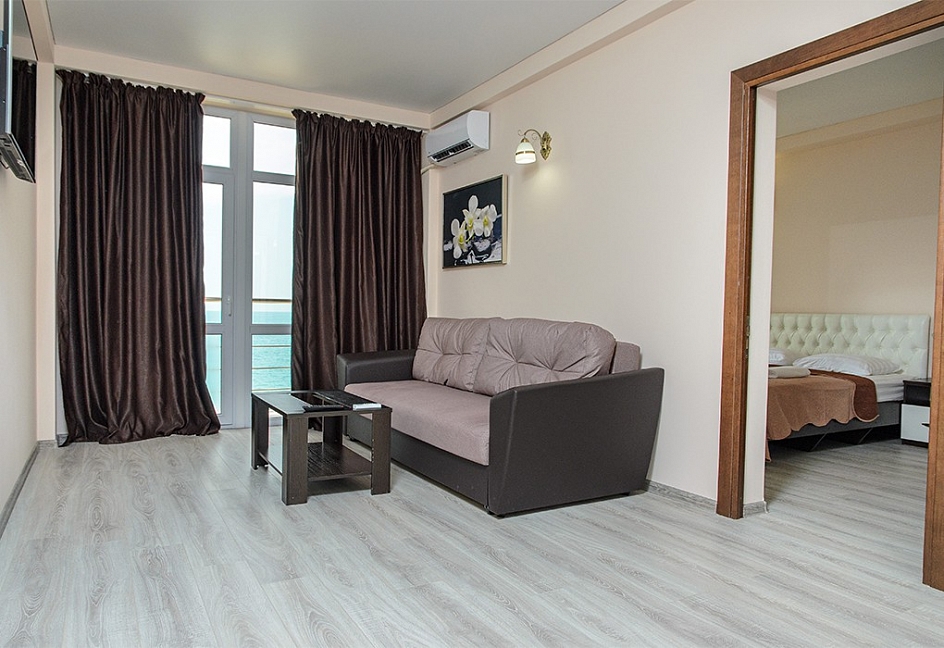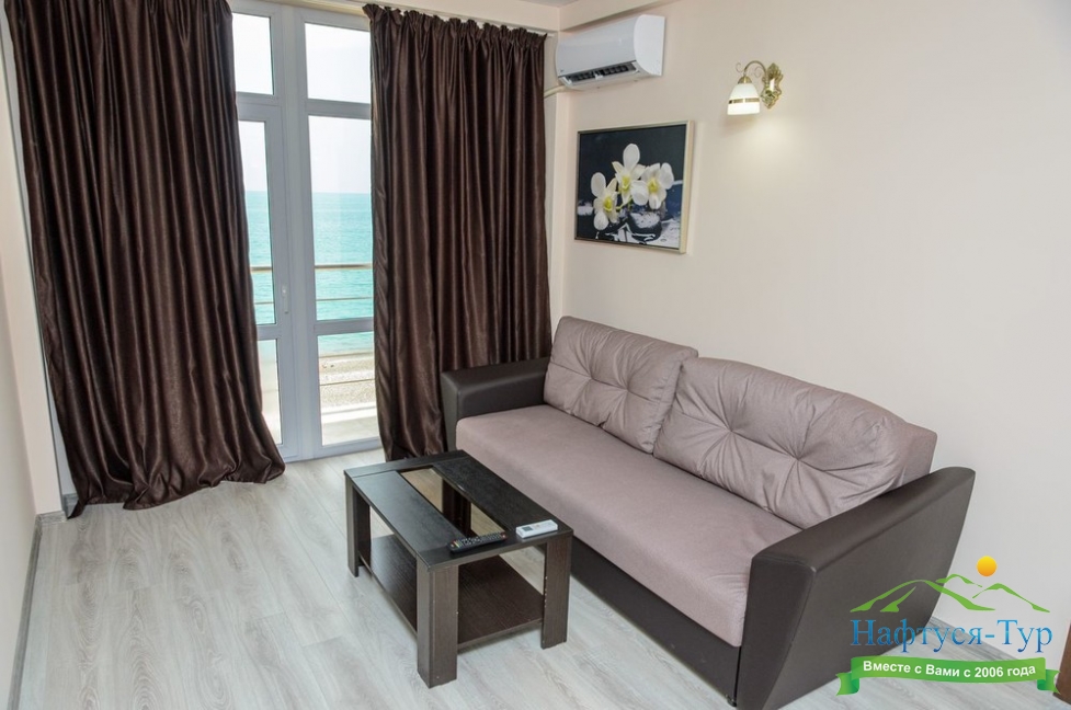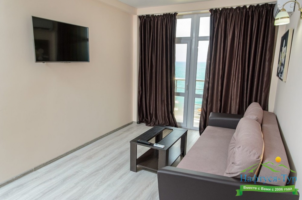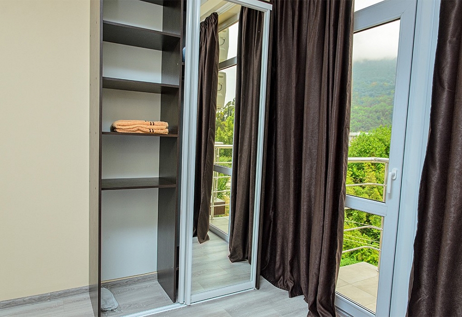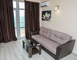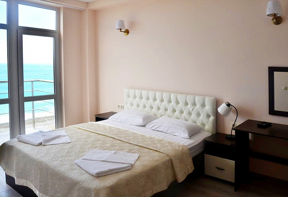 Расположение: Первая линия у моря (10 м до пляжа), 60 м до центра Гагры, 40 км до аэропорта Адлер