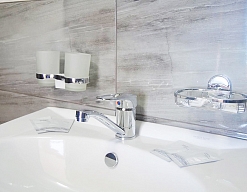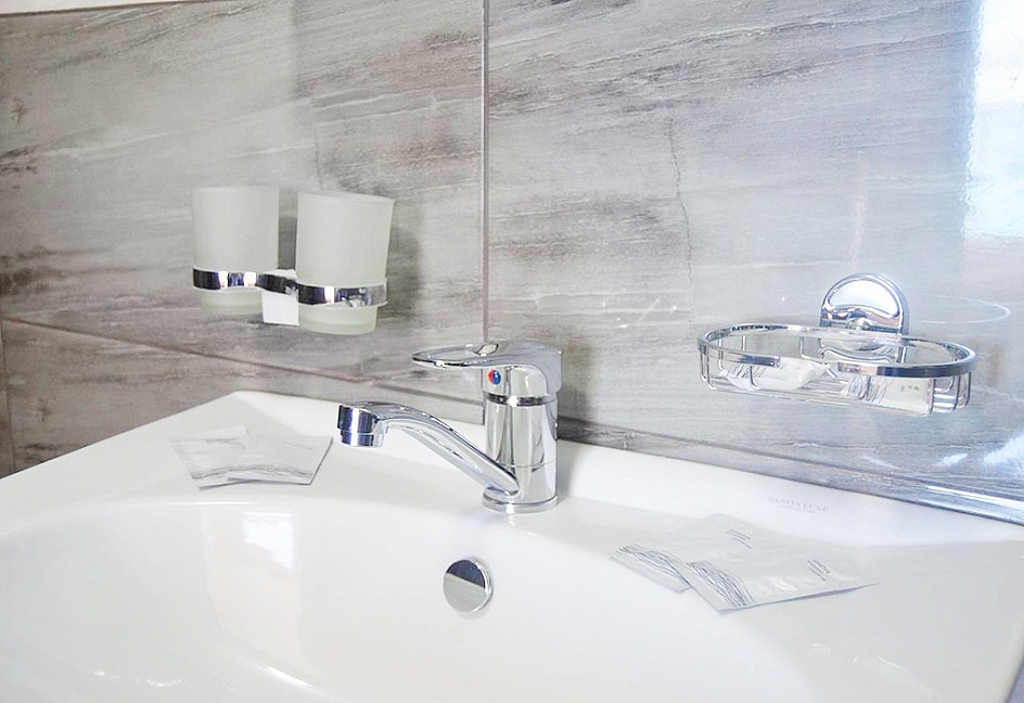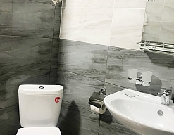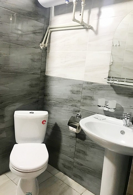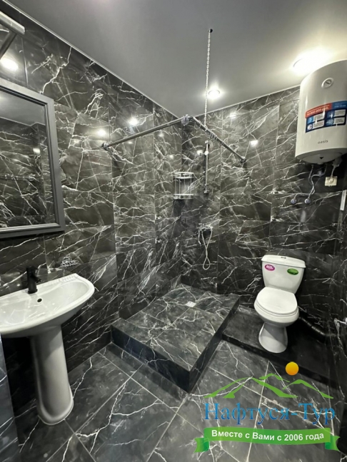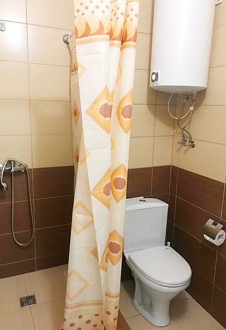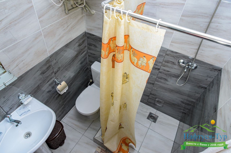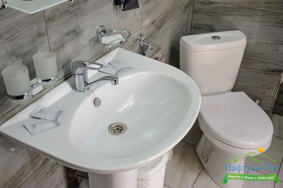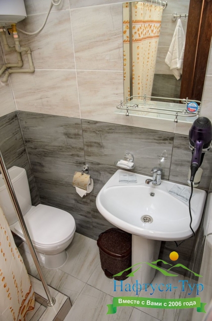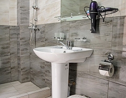 с душем (поддон), туалетные принадлежности, фен