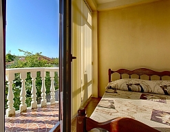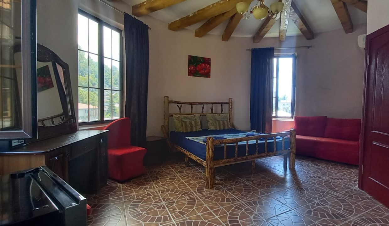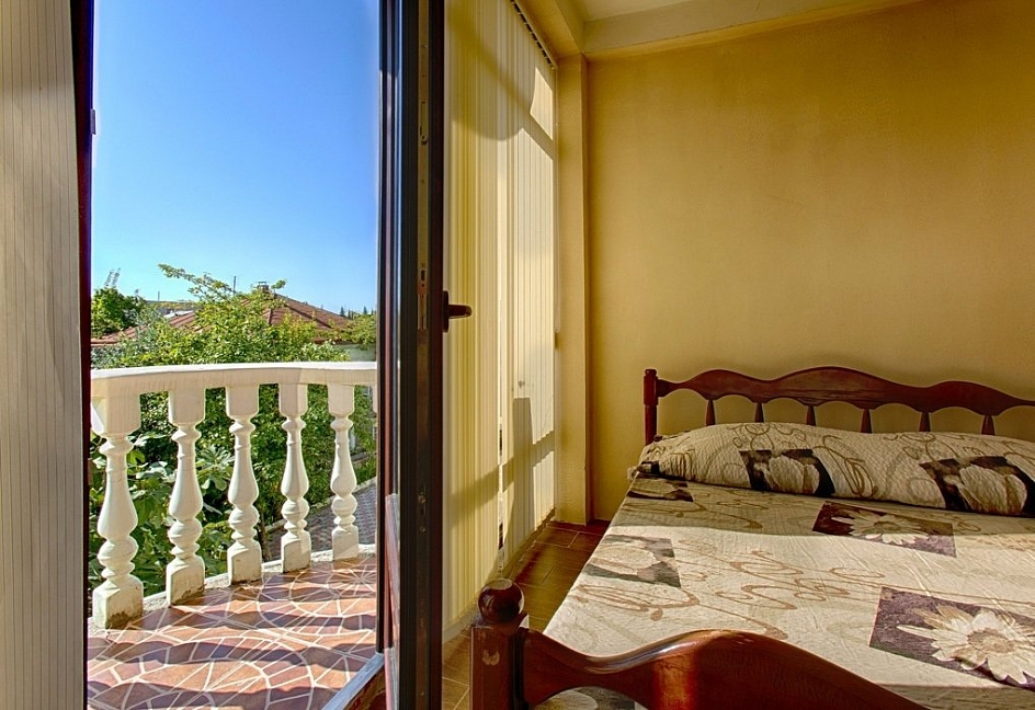 Расположение: Первая линия у моря (150 м до пляжа), 150 м до центра, 42 км до аэропорта Адлер