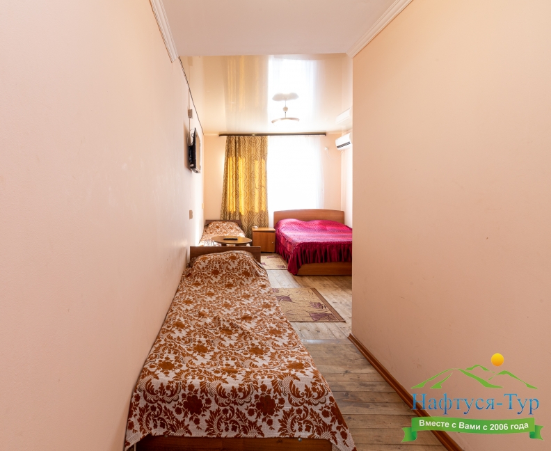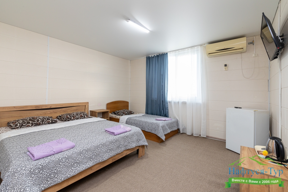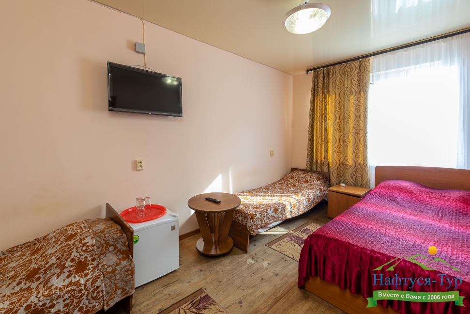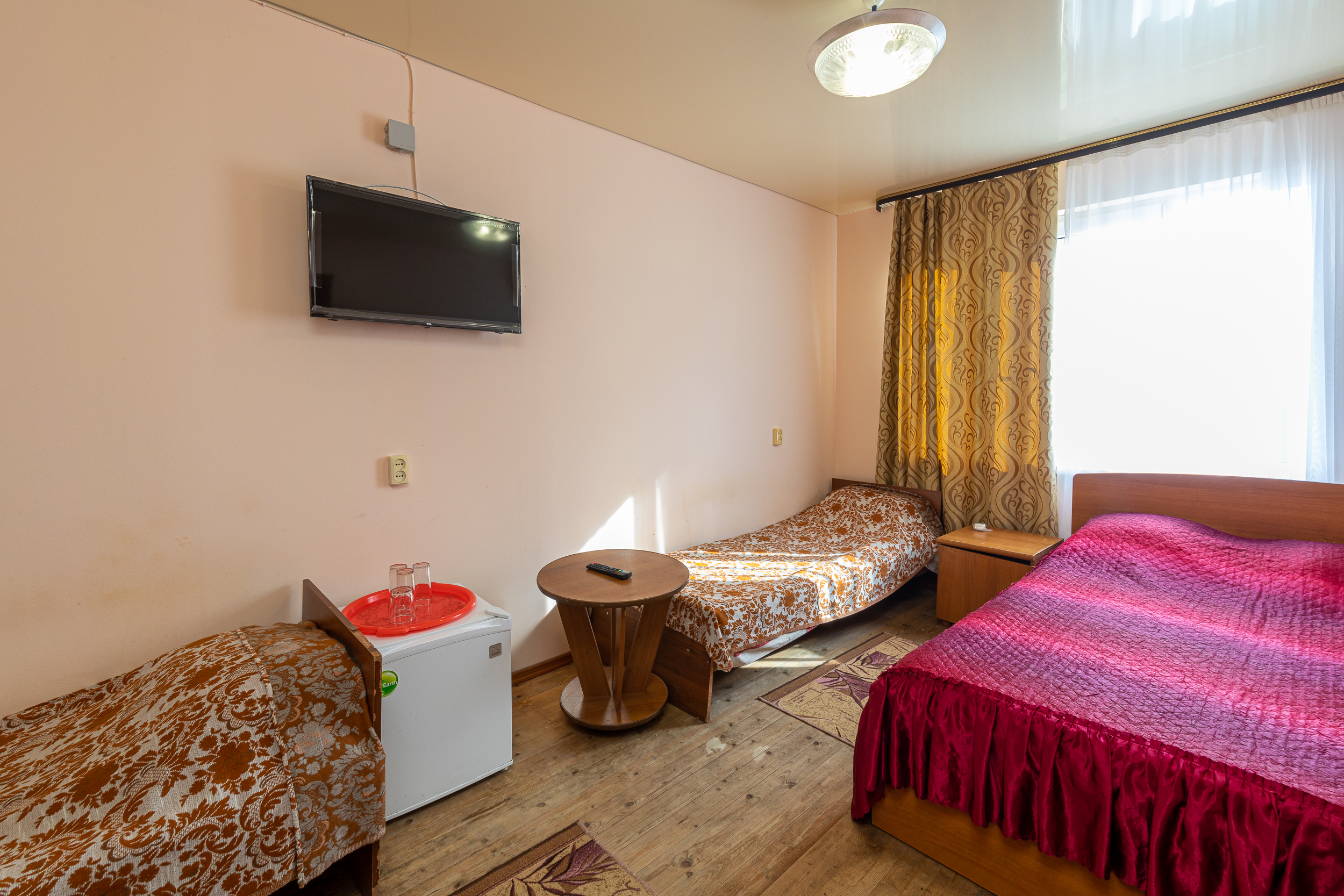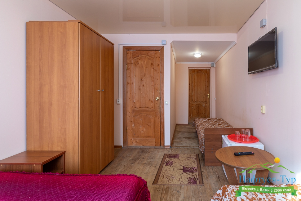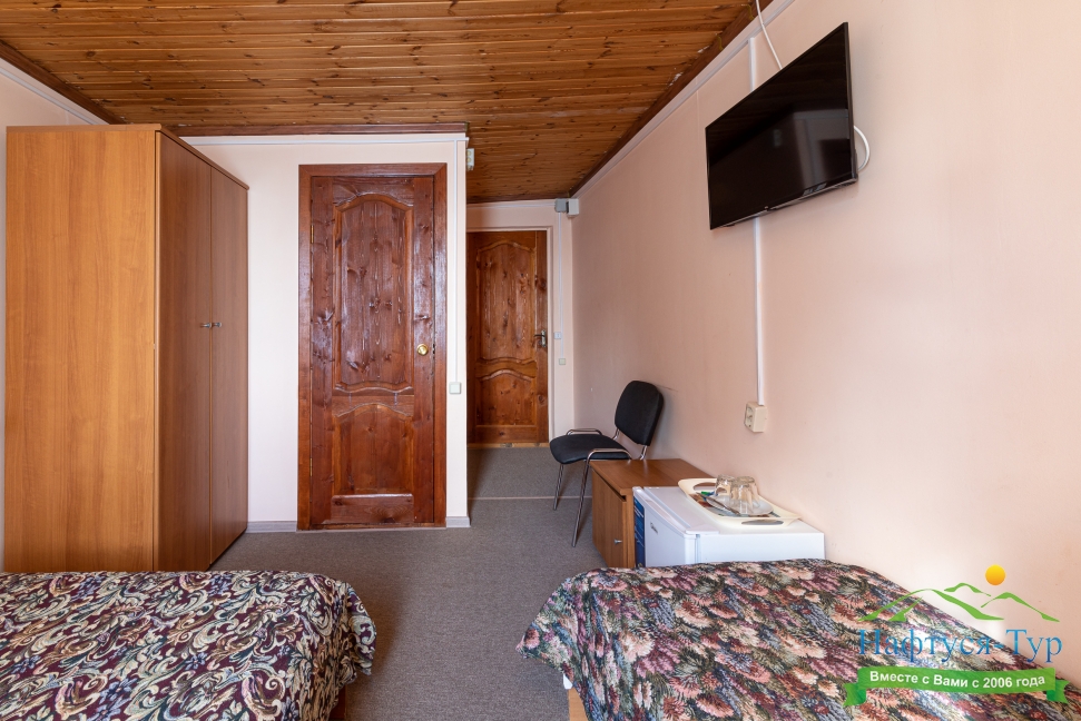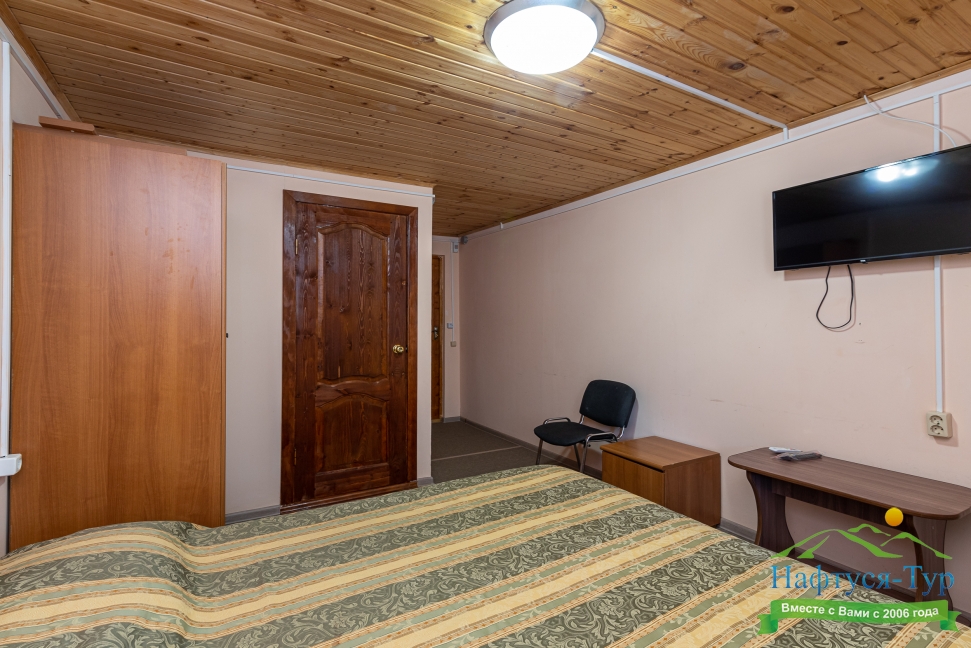 Это просто ужас! Я не знаю как по другому описать! Сначала нас поселили в номер 2*2 в прямом смысле, где просто двум людям не развернуться. Стоит кровать и телевизор( экран размером как ноутбук маленький) ну хотя бы есть телевизор) мы попросили переселить нас в другой номер, нас переселили в 41 номер, он считается одним из лучших.