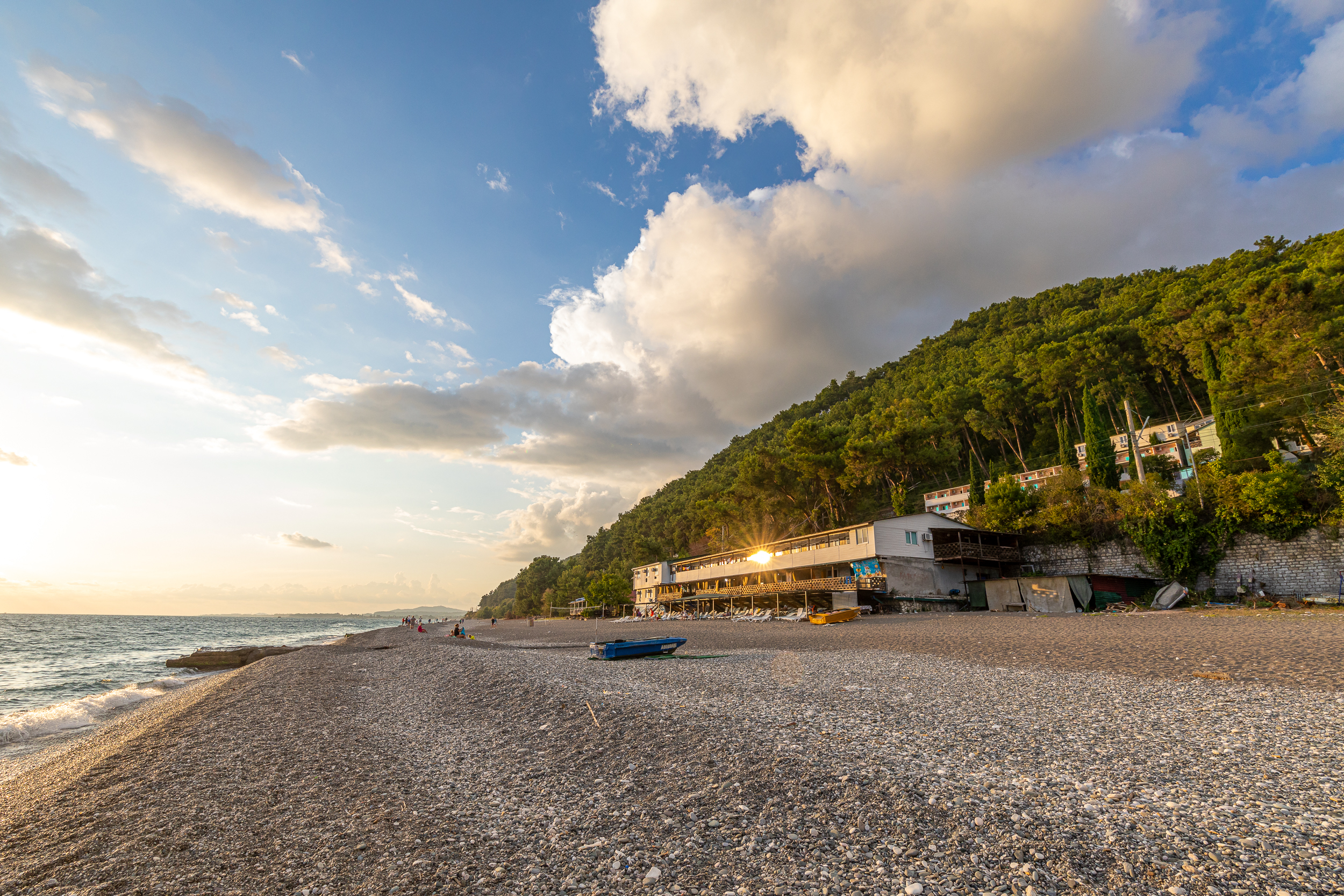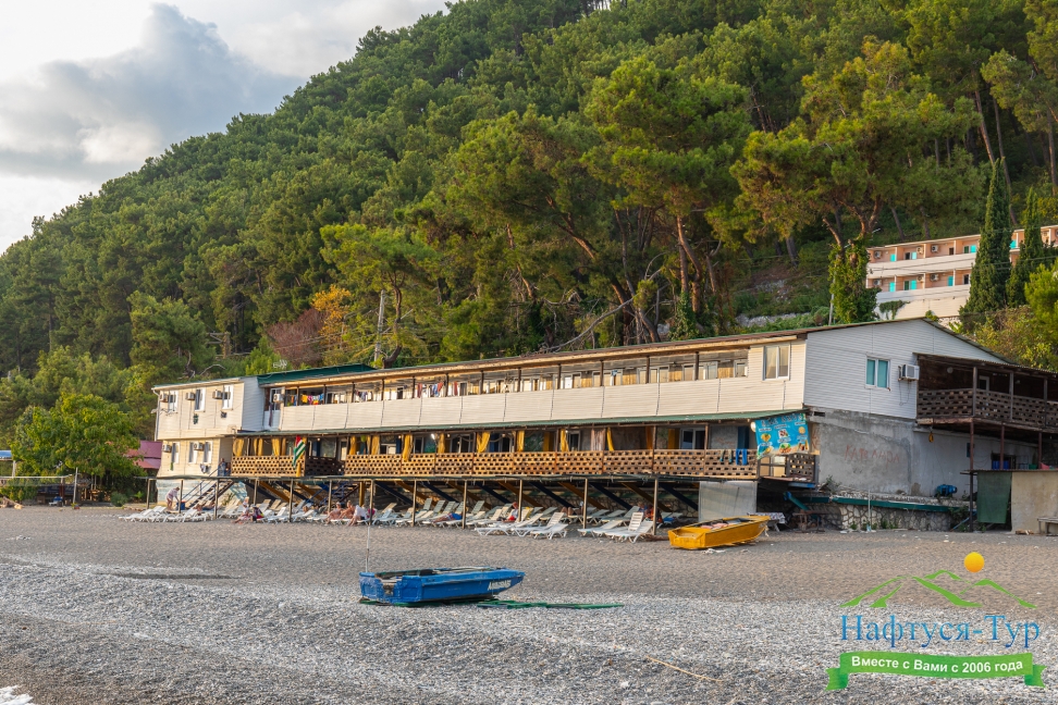 Расположение: Первая линия у моря (100 м до пляжа), 20 км до центра Гагры, 40 км до аэропорта Адлер