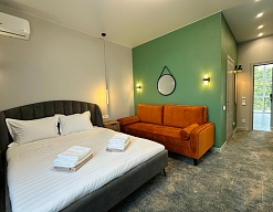 Расположение: Первая линия у моря (30 м до пляжа), 4 км от границы, 20 км до аэропорт Адлер