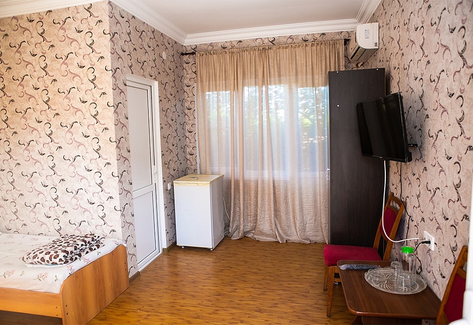 Вернулись с отдыха где-то полгода назад, и я наконец-то собралась написать отзыв. Приехав на поезде и пройдя через границу, мы заселились в номер. Комната обычная, не «страшная». Да, мебель старенькая и обстановка совершенно без изысков, зато все необходимое есть: две кровати, тумбочки, стол, стулья, шкаф, телевизор, холодильник.