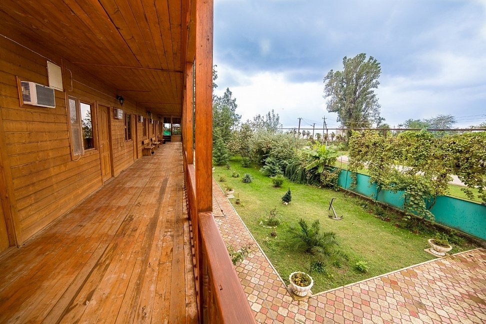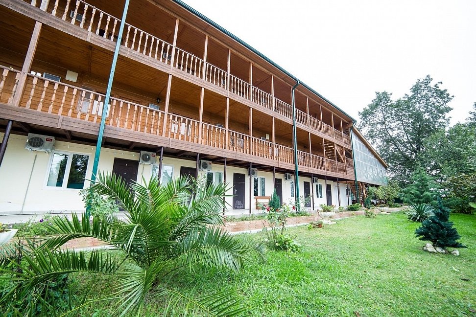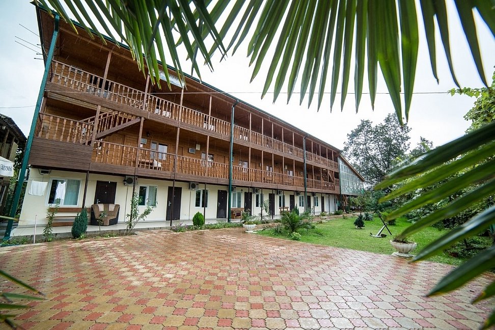 Расположение: Первая линия у моря (30 м до пляжа), 80 км до аэропорта Адлер. Гудаута