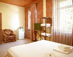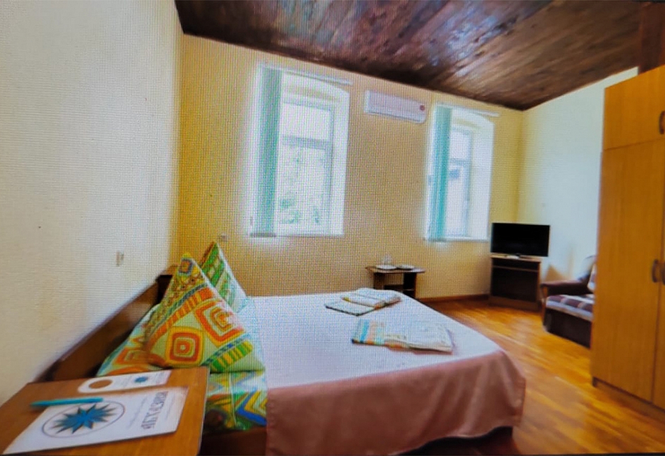 Расположение: Первая линия у моря (20 м до пляжа), 100 м до центра, 100 км до аэропорта Адлер