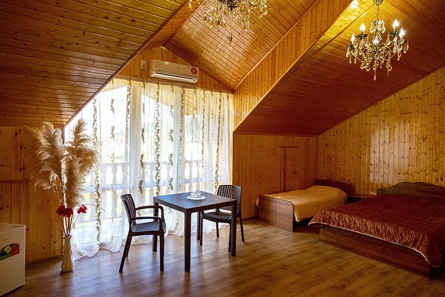 Расположение: 400 м до пляжа, 3 км до центра Пицунды, 23 км до центра Гагра, 61 км до аэропорта Адлер