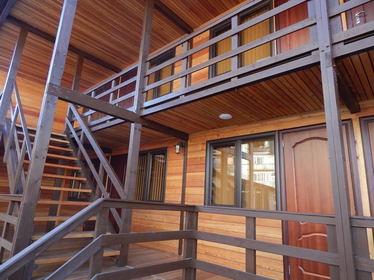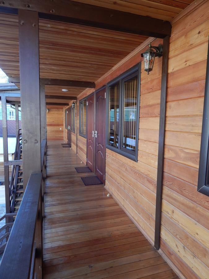 Построен отель из натуральной лиственницы, при строительстве использовались только экологически чистые материалы. Недалеко от отеля располагается бесплатный VIP-пляж! Имеется также парковая зона для прогулок по дороге на пляж с развлечениями, как для детей так и для взрослых.