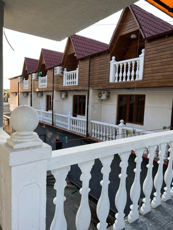 Пансионат состоит из 64 двухместных 2х – этажных уютных семейных коттеджей в европейском стиле, которые выстроились в ряд на утопающей в зелени территории, расположенной всего 10 м от Черноморского побережья.