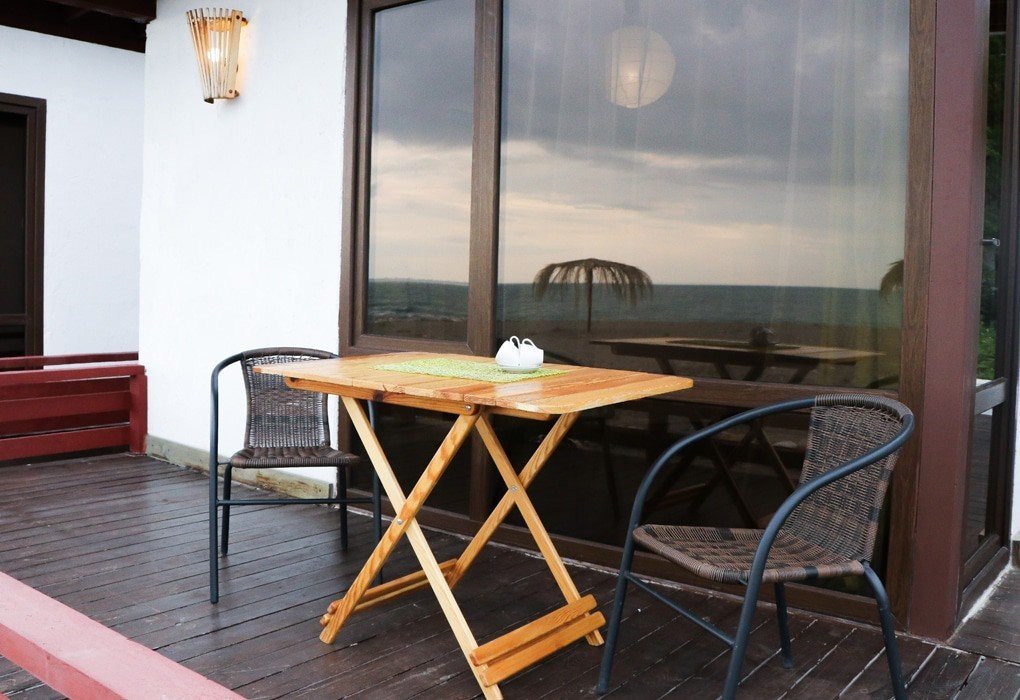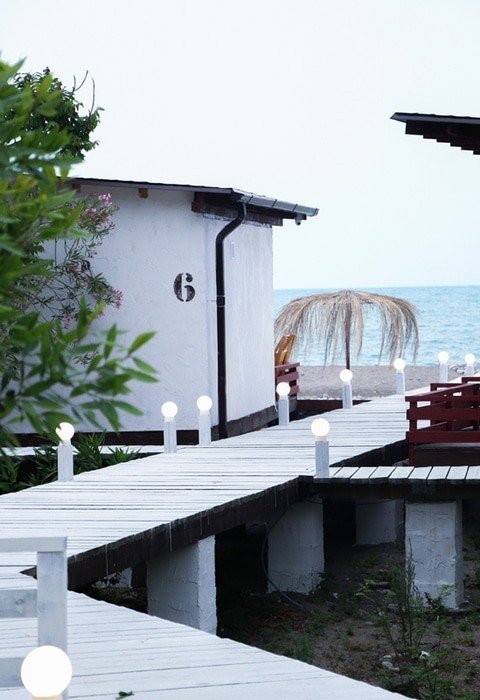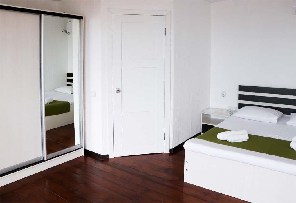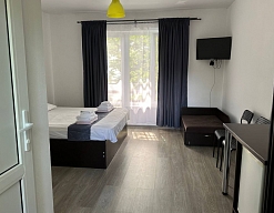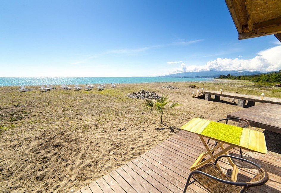 Расположение: Первая линия у моря (30 м до пляжа), 5 км до центра, 128 км до аэропорта Адлера