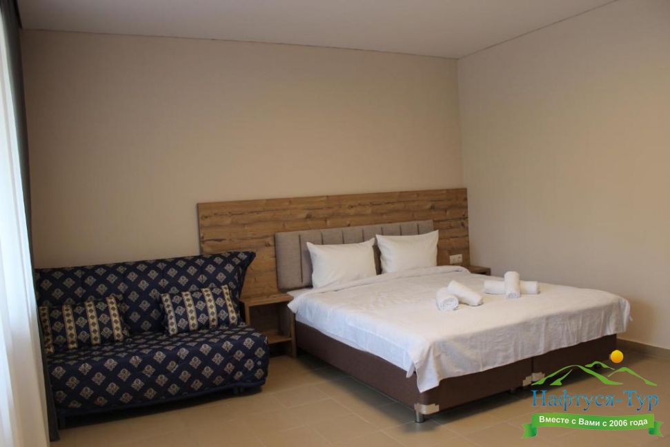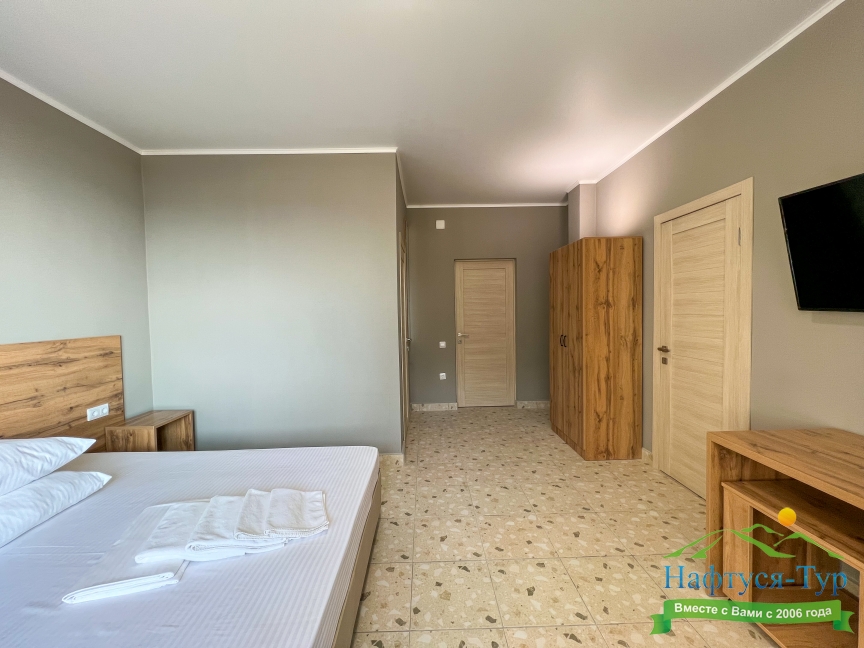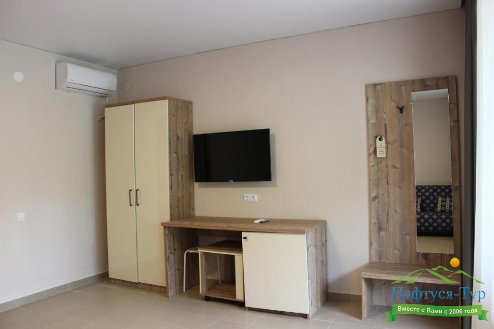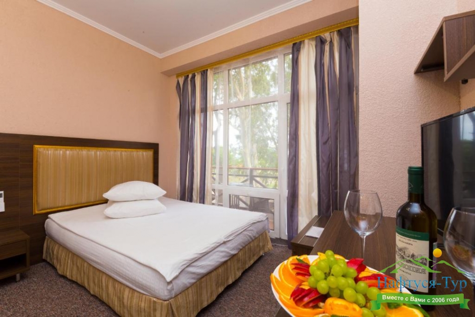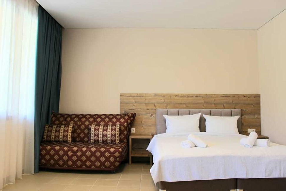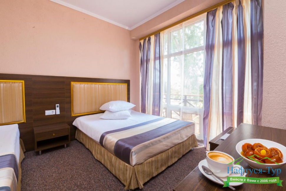 Отель построен в 2016 году и может предложить постояльцам все современные удобства, Круглосуточное и бесплатное подключение к интернет, Цифровое ТВ, новейшую мебель и сантехнику. Ничто не омрачит ваш отдых в Абхазии, если вы выберете отель «SPA Hotel Napra».