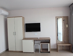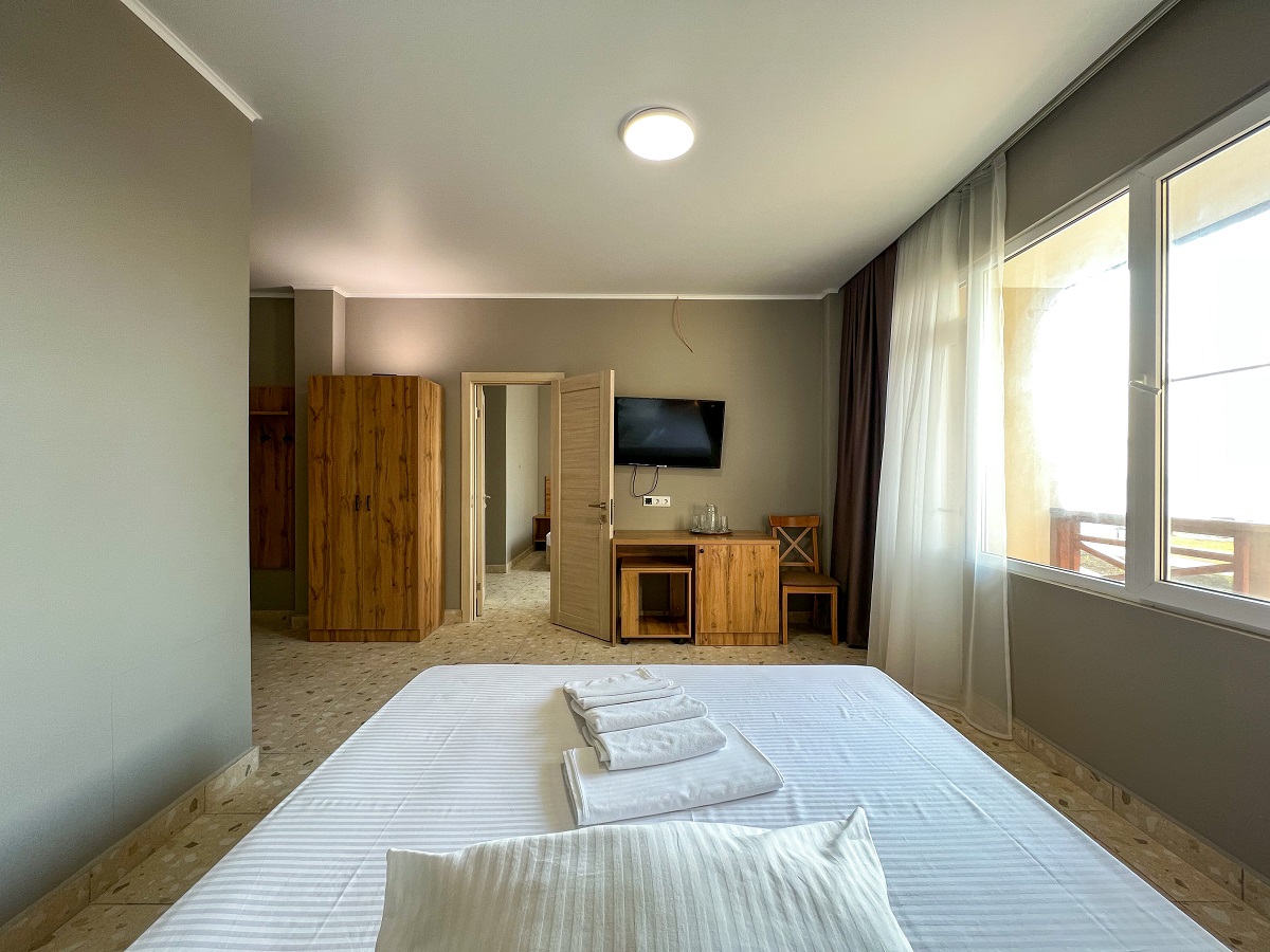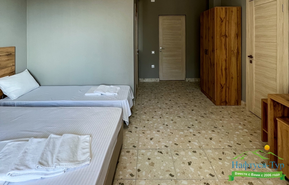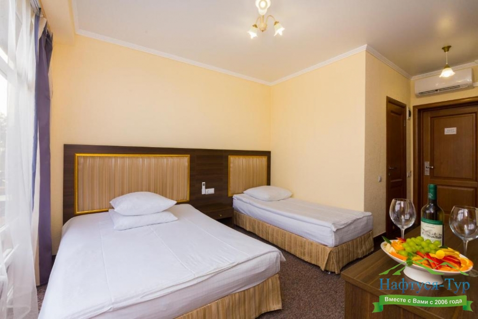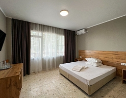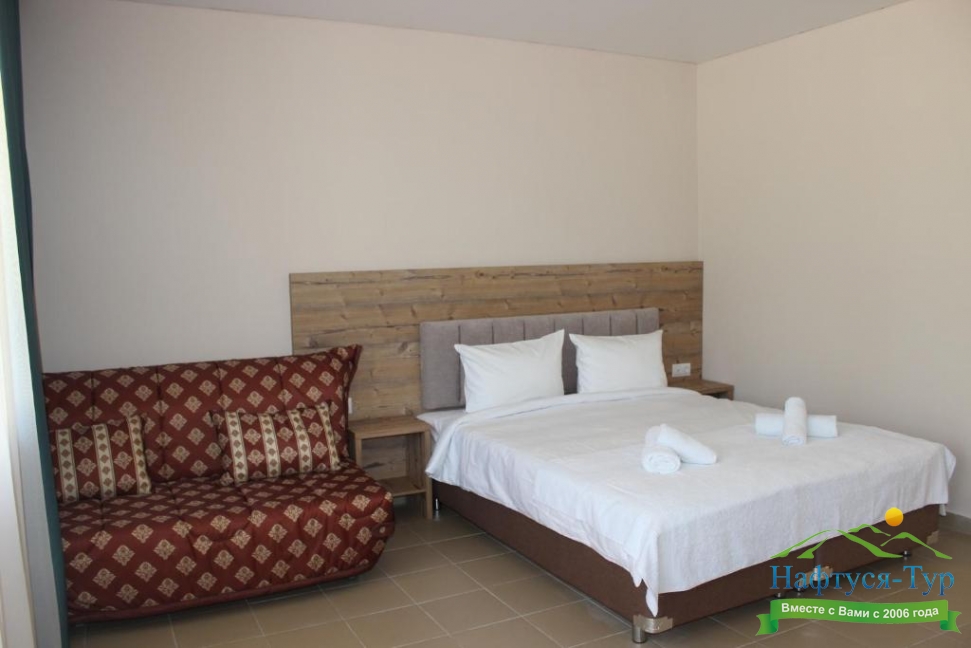 Отель построен в 2016 году и может предложить постояльцам все современные удобства, Круглосуточное и бесплатное подключение к интернет, Цифровое ТВ, новейшую мебель и сантехнику. Ничто не омрачит ваш отдых в Абхазии, если вы выберете отель «SPA Hotel Napra».