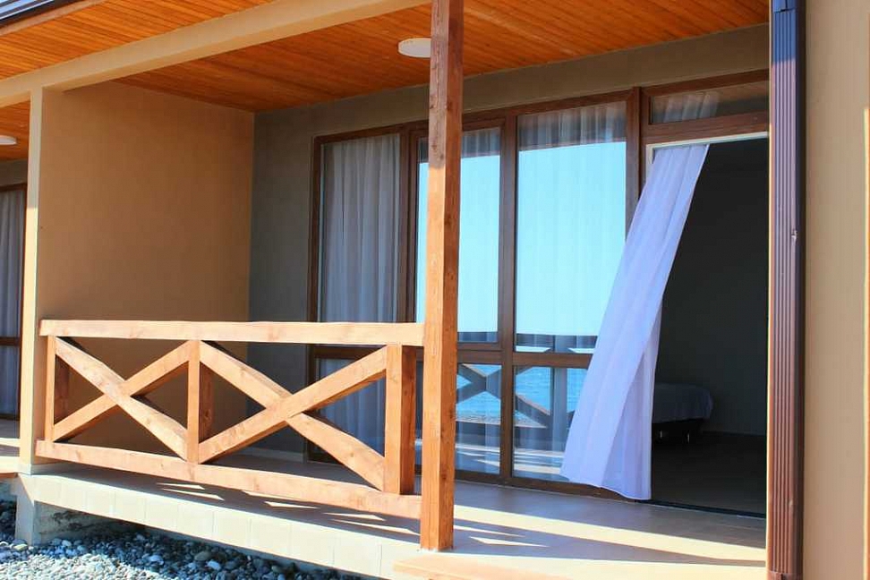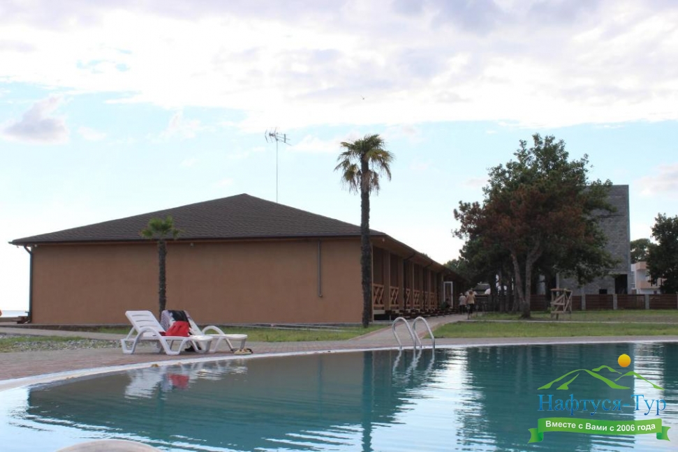 Расположение: Первая линия у моря (50 м до пляжа), 40 км до аэропорта Адлер