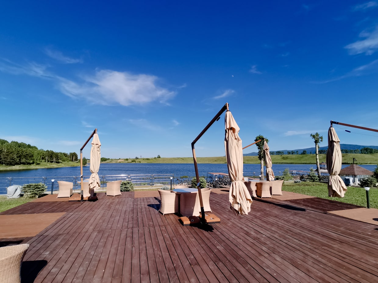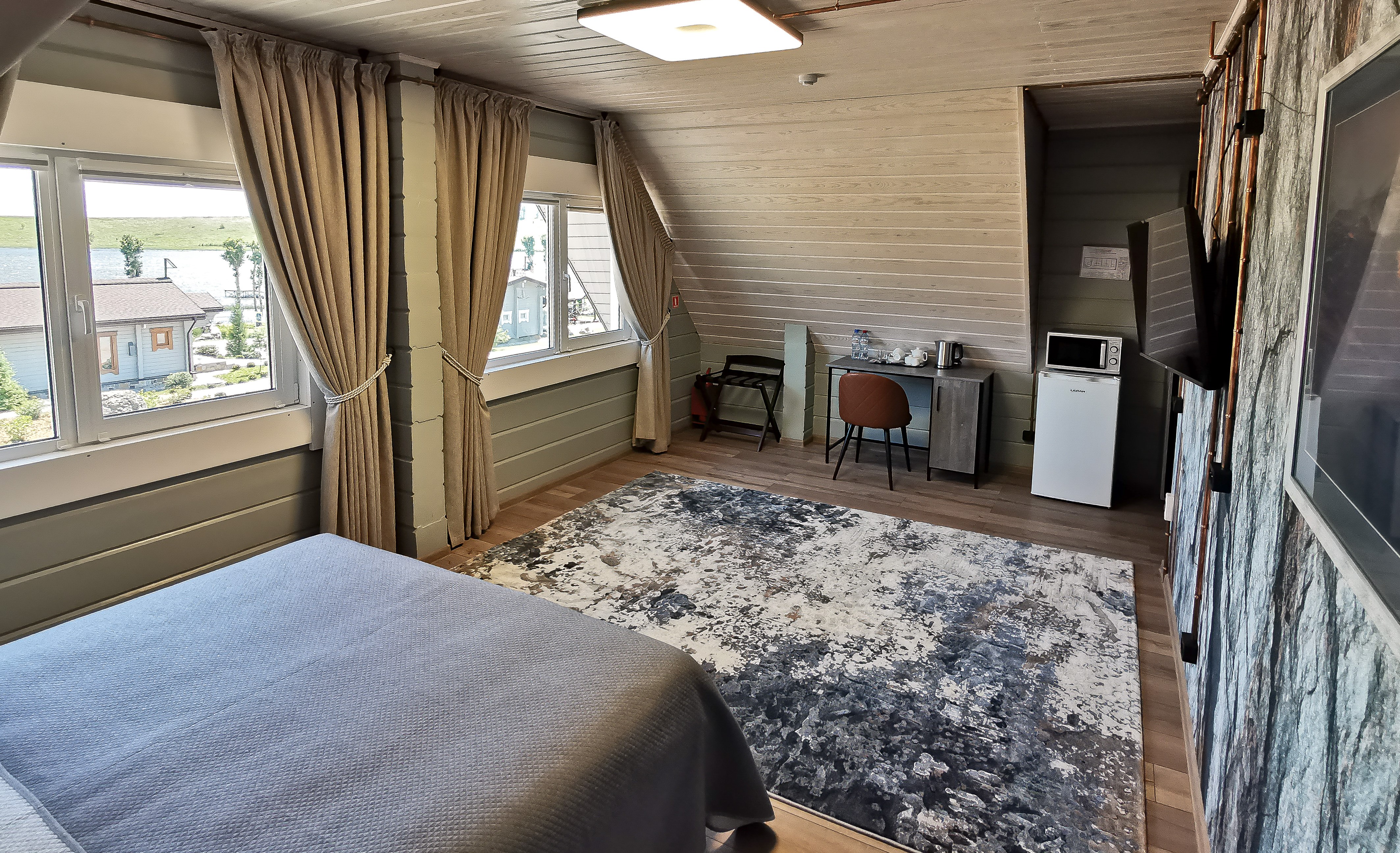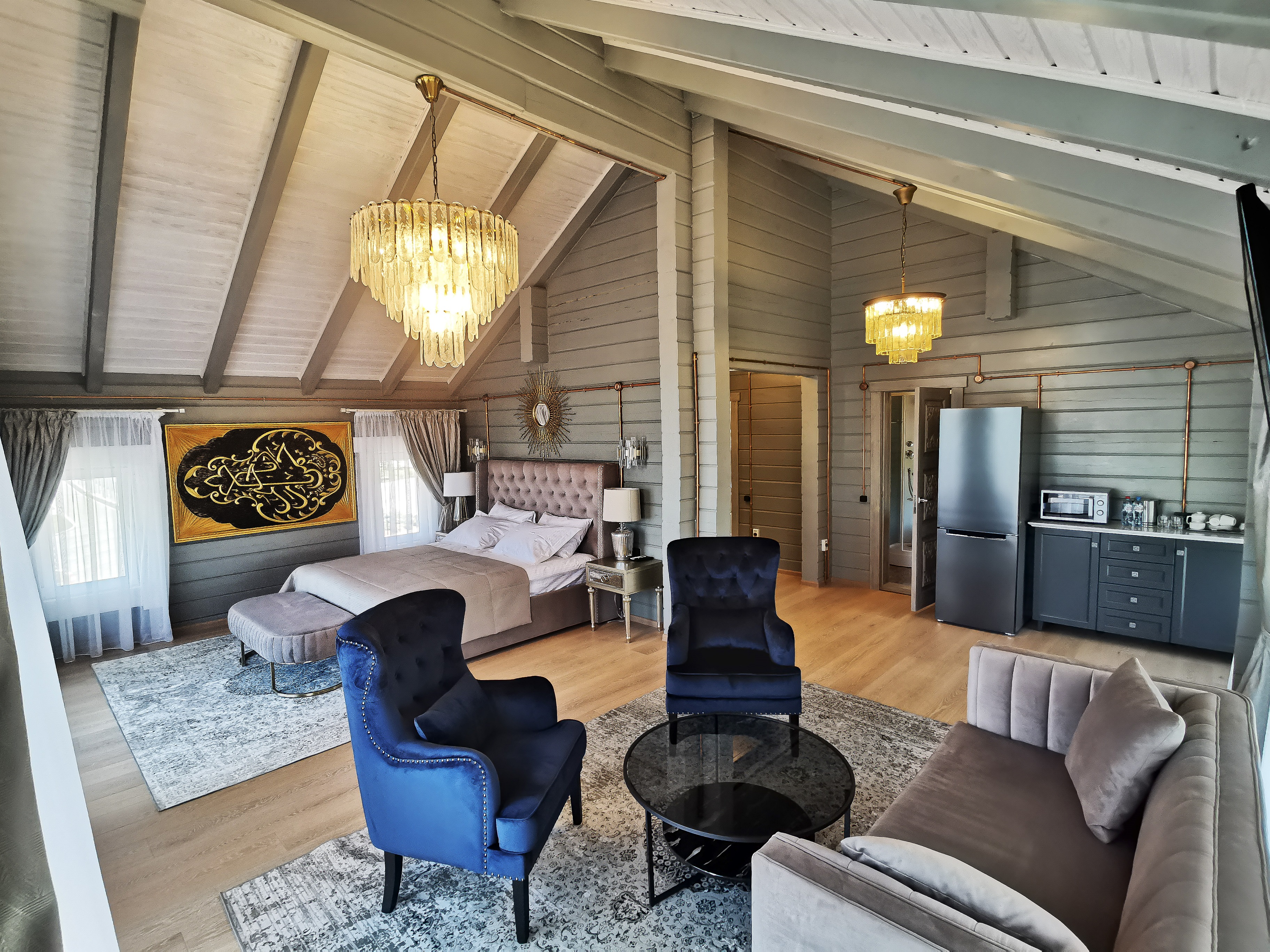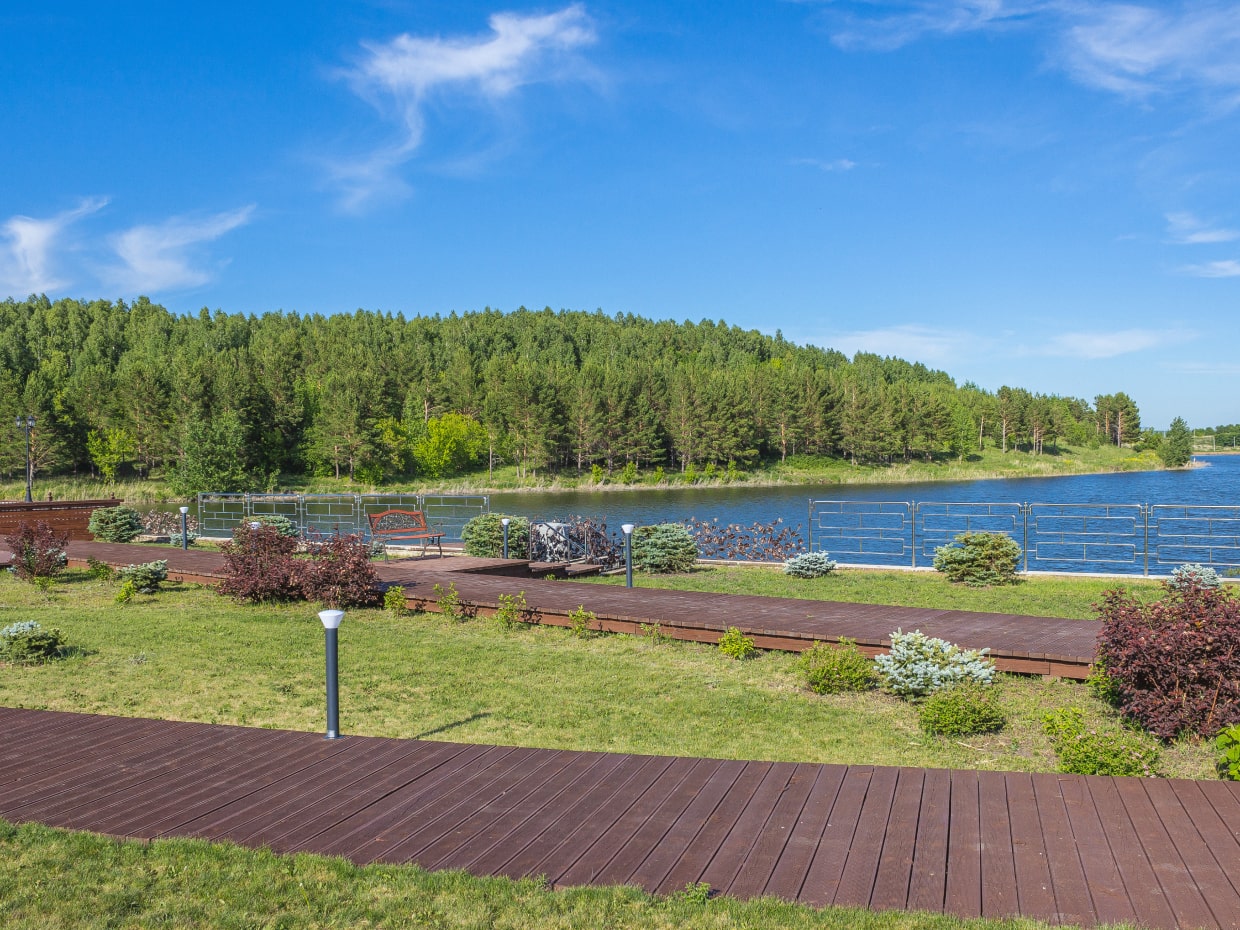 Поездом до ж/д вокзала г. Бийска, далее с автовокзала на междугороднем автобусе №565 до «Село Старобелокуриха» (школа), далее 1,9 км до апарт-отеля.