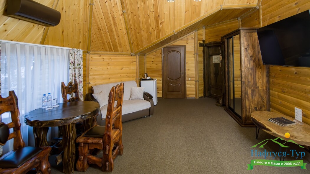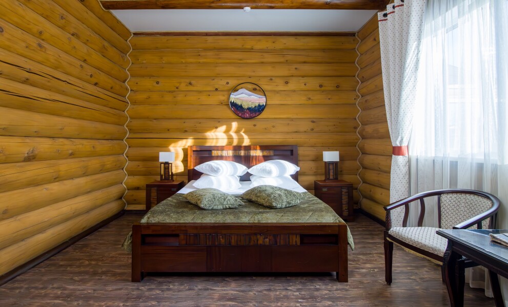 - здание отеля построено из натурального, экологически чистого материала – многовекового кедра
