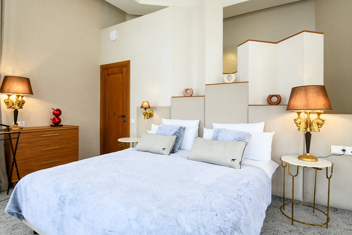 кровать двуспальная, прикроватные столики, стол, стул, шкаф