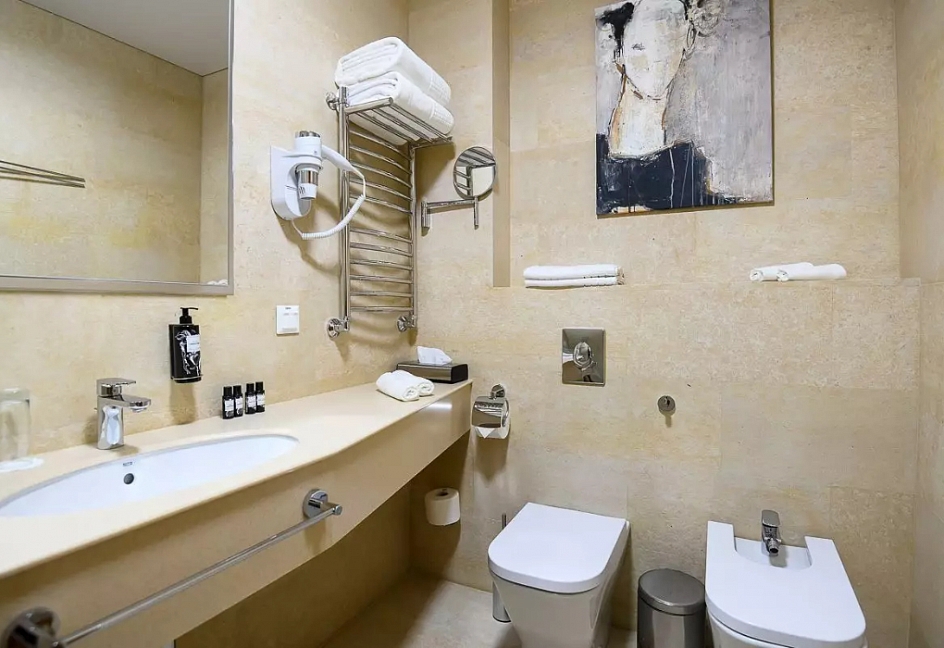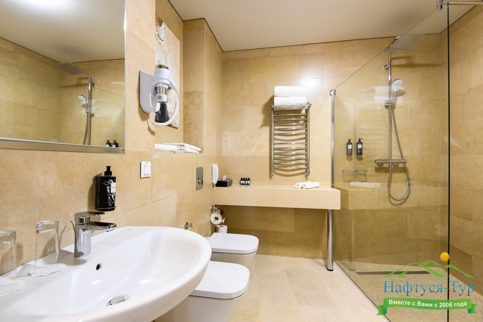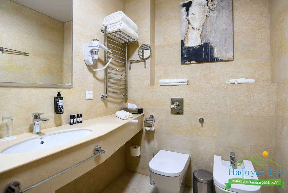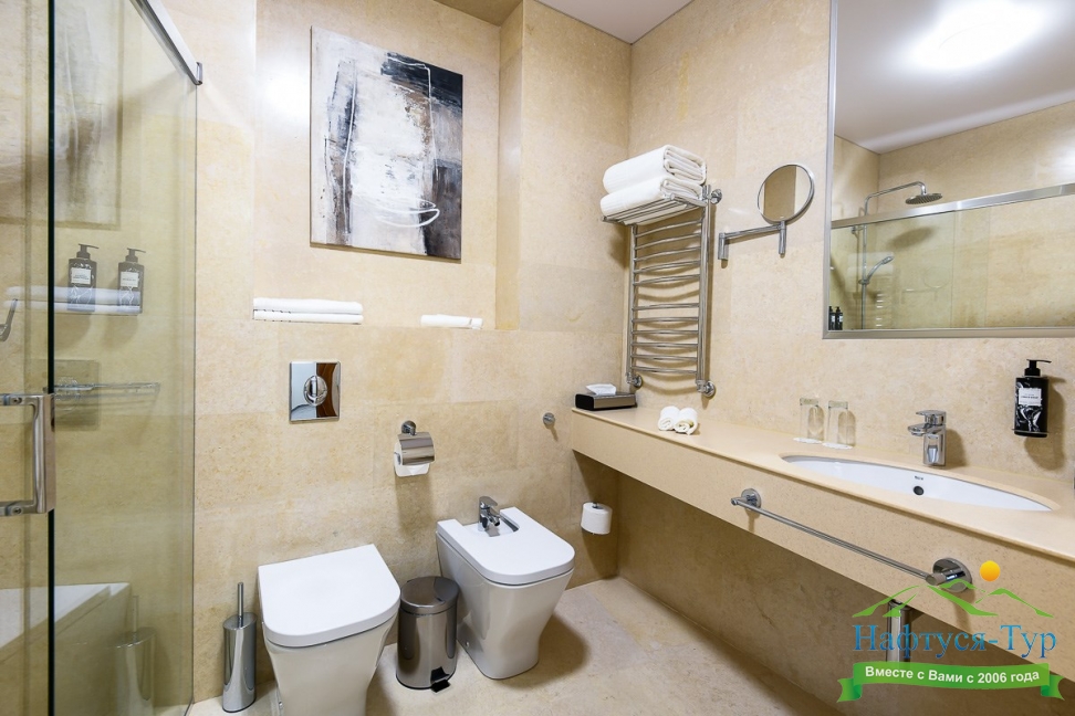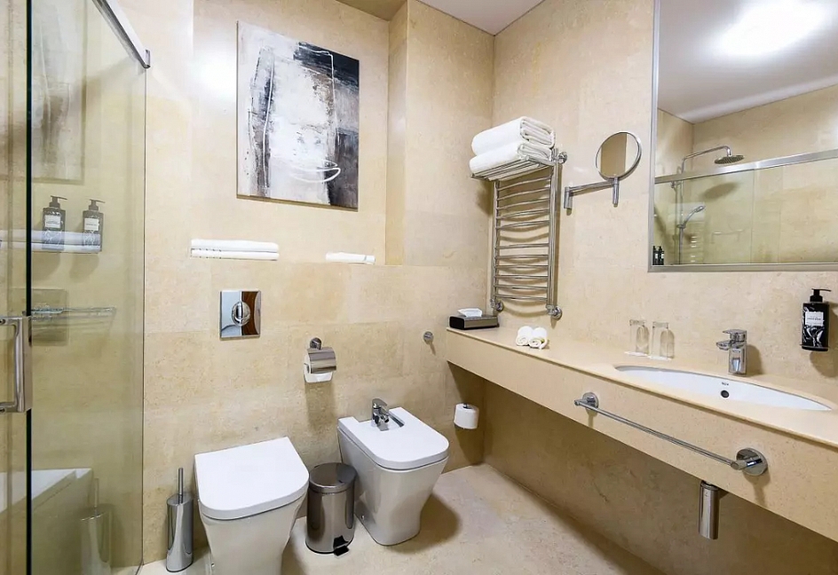 2 санузла, биде, с душевой кабиной, тапочки, туалетные принадлежности, фен, халат