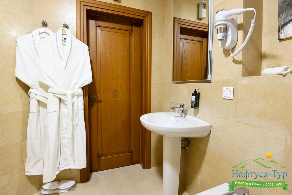 биде, с душевой кабиной, тапочки, фен, халат
