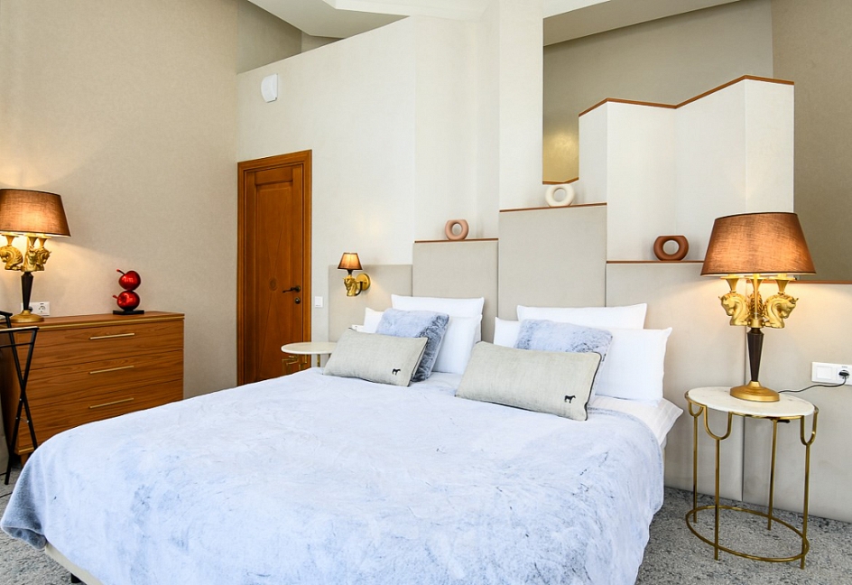 диван раскладной, комод, кресло, кровать двуспальная, прикроватные столики, стол, стул, шкаф