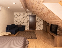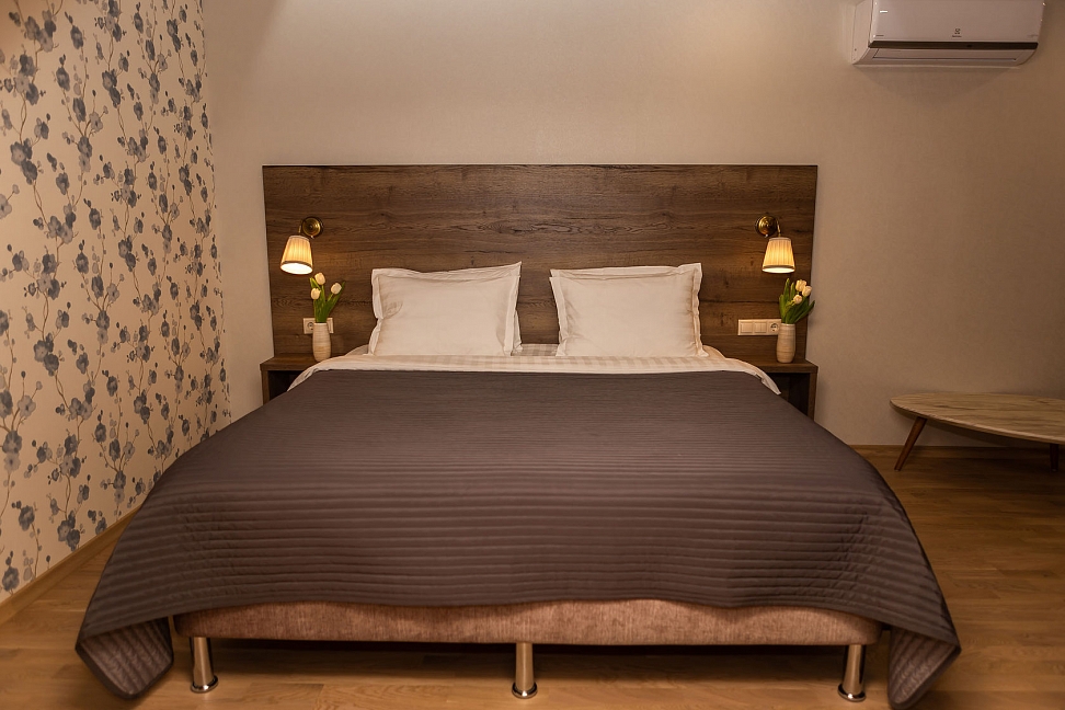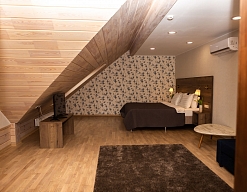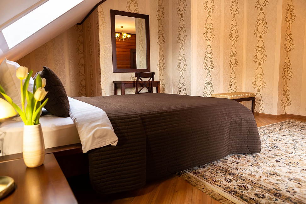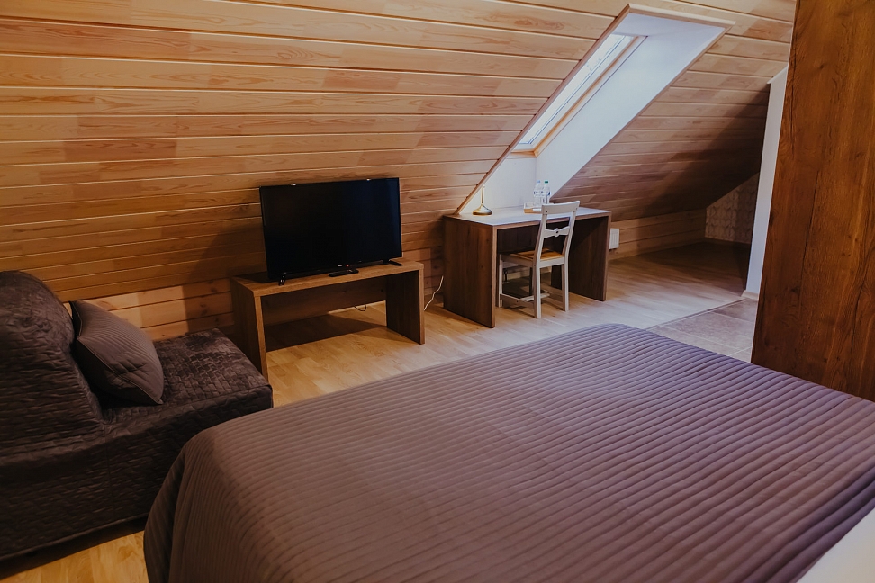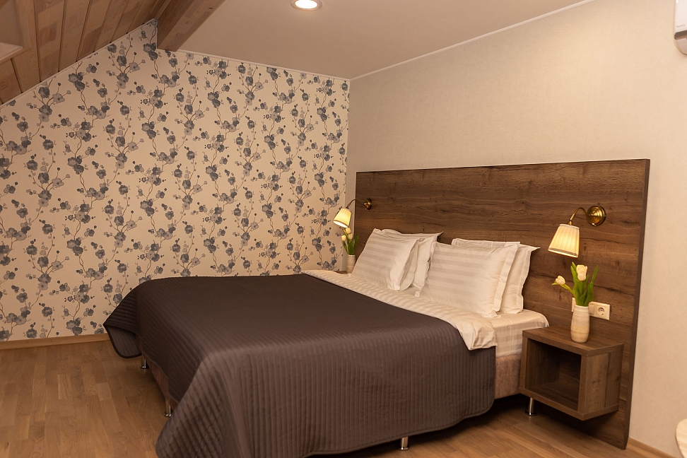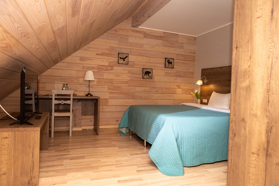 Важной особенностью нашего отеля является то, что все корпуса изготовлены из натурального дерева. Это способствует глубокому здоровому сну, комфортному отдыху, естественному снятию стресса. К вашим услугам 29 комфортабельных номеров категорий: Стандарт, Стандарт +, Делюкс, Люкс, Люкс +, Семейные апартаменты.