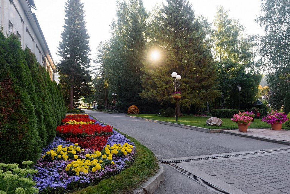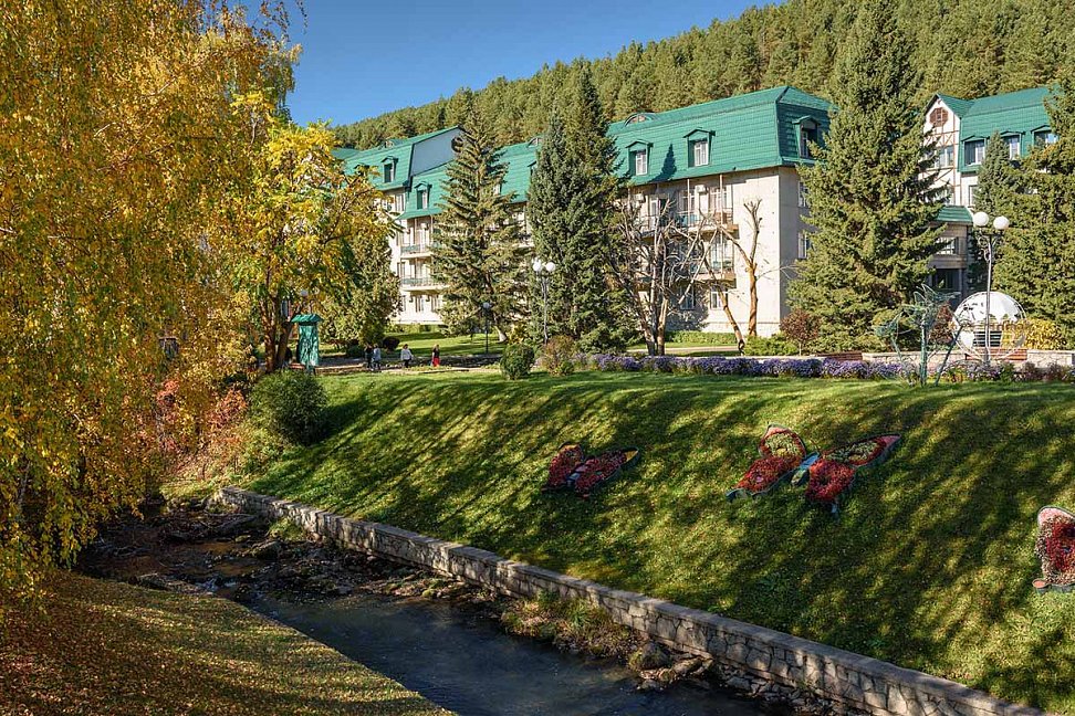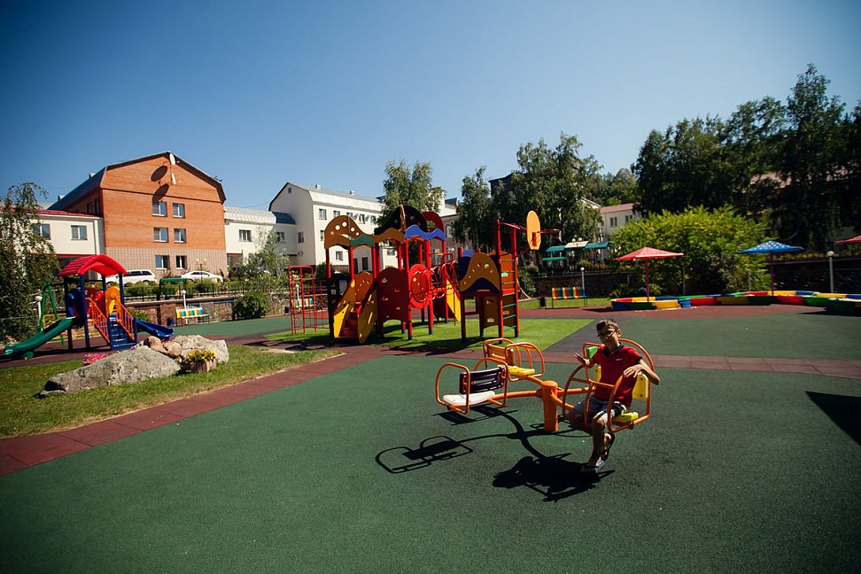Для активного отдыха гостей ожидают различные спортивные площадки, тренажерный зал, бассейн, а также организуются экскурсии по живописным местам Белокурихи и Алтайского края.
