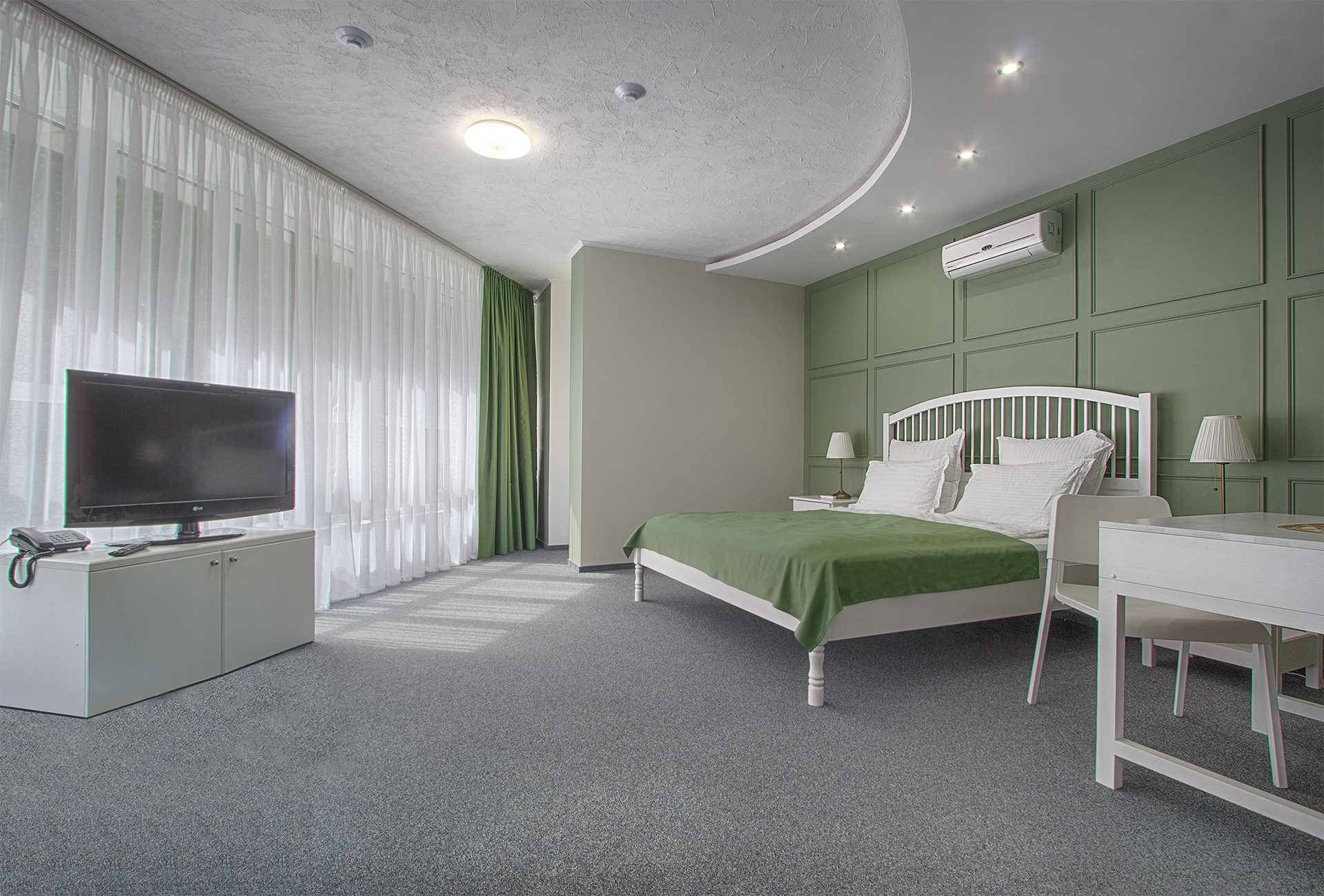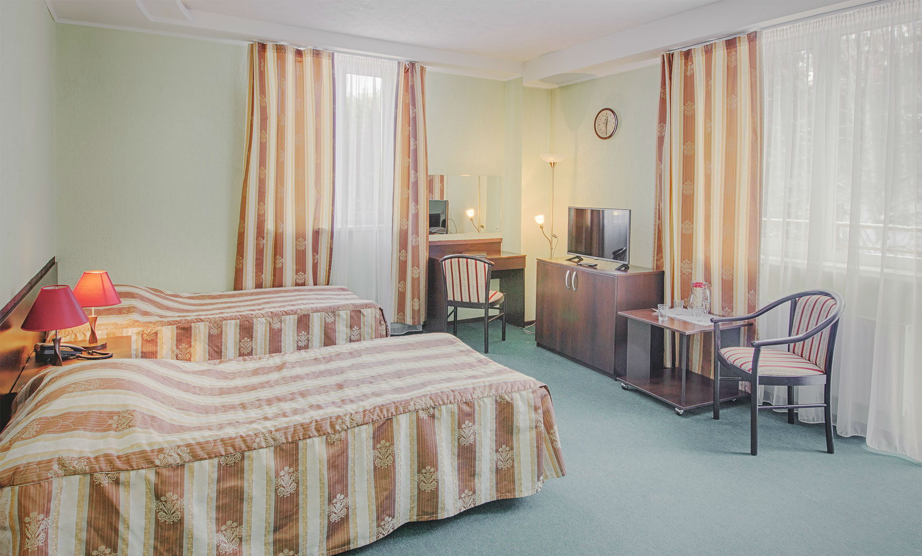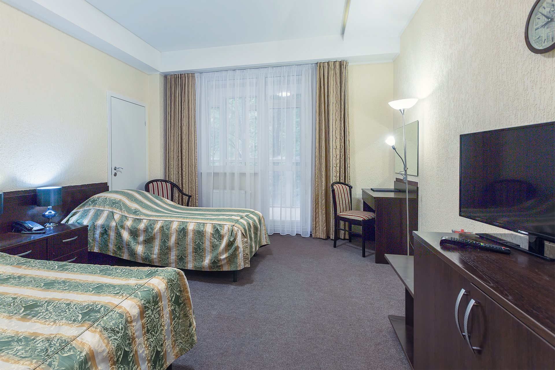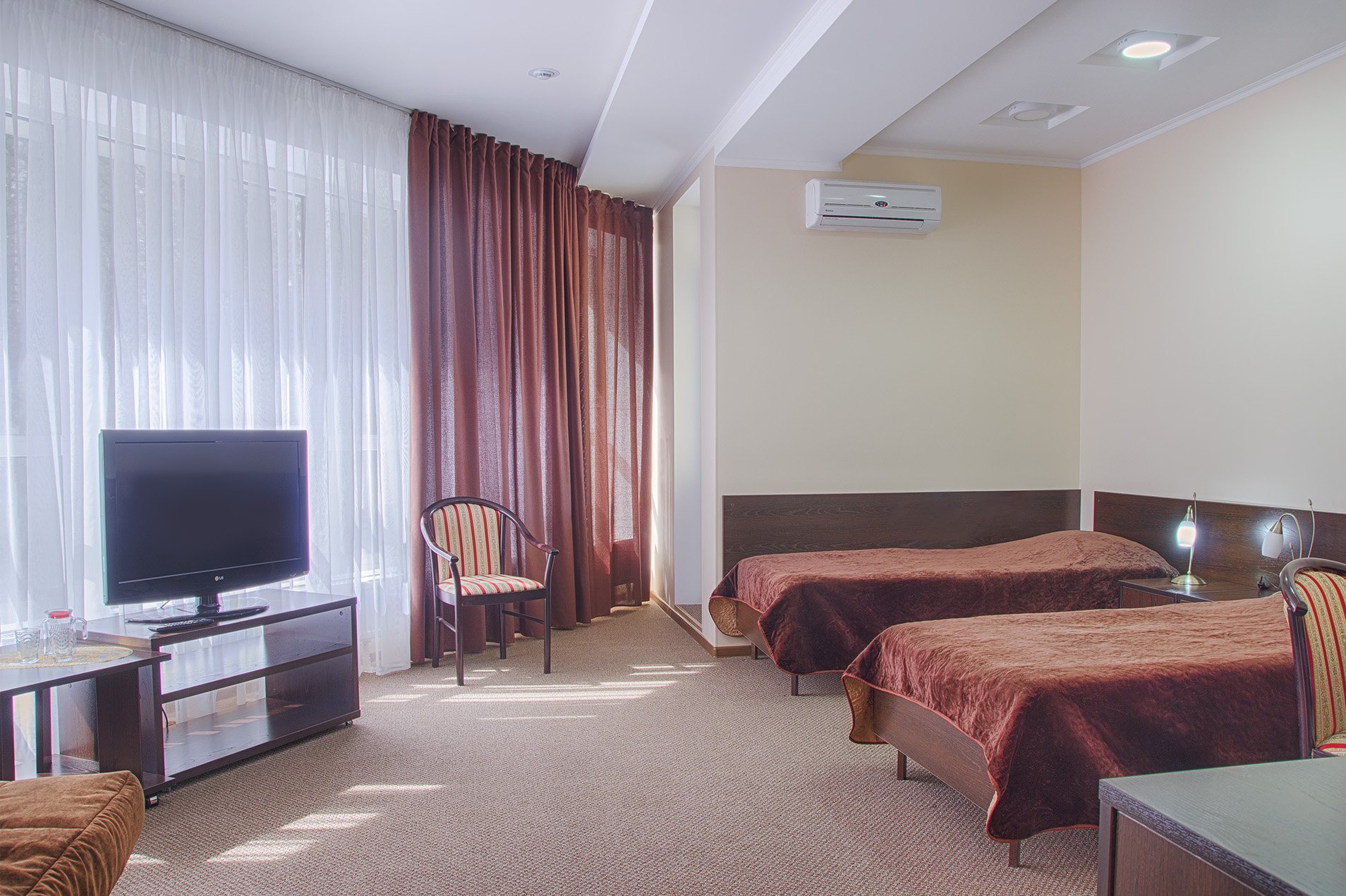 Комфортабельные номера санатория оборудованы современной мебелью и техникой, обеспечивая уют и комфорт проживания. Из окон открываются великолепные виды на горы и леса Белокурихи, что делает проживание здесь особенно приятным и релаксирующим.