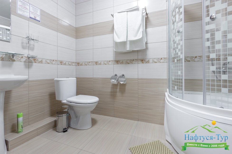 с душевой кабиной, фен, халат