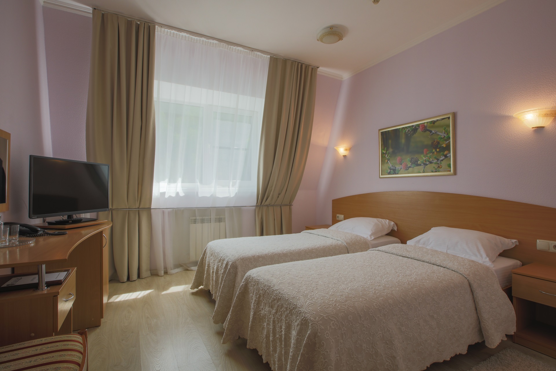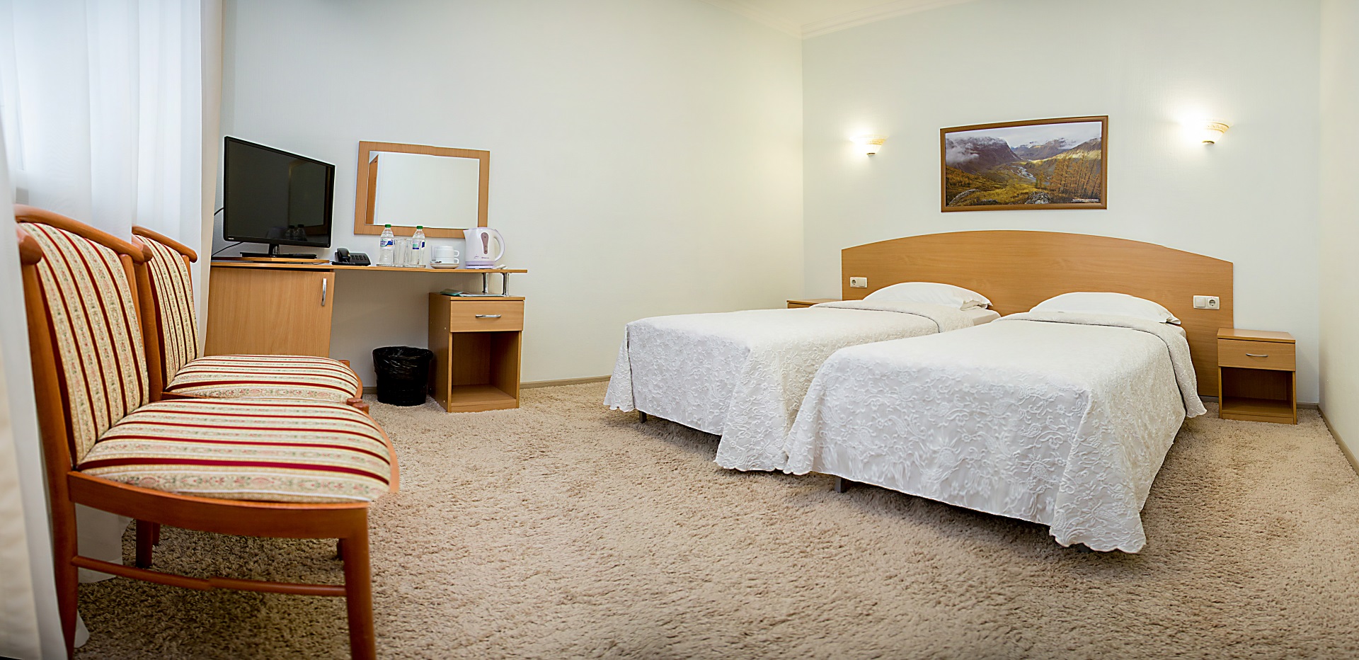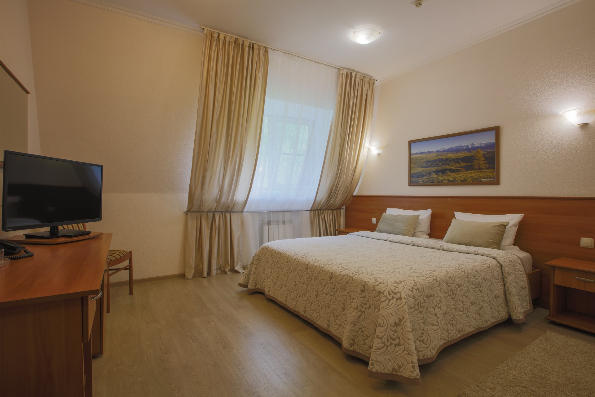 Инфраструктура санатория «Белокур» разработана так, чтобы предоставить всё необходимое для комфортного и полезного отдыха. Просторные и уютные номера, оборудованные современной мебелью и техникой, позволят вам по-настоящему насладиться отдыхом в Белокурихе. Благоустроенная территория санатория идеально подходит для прогулок на свежем воздухе и активного отдыха.