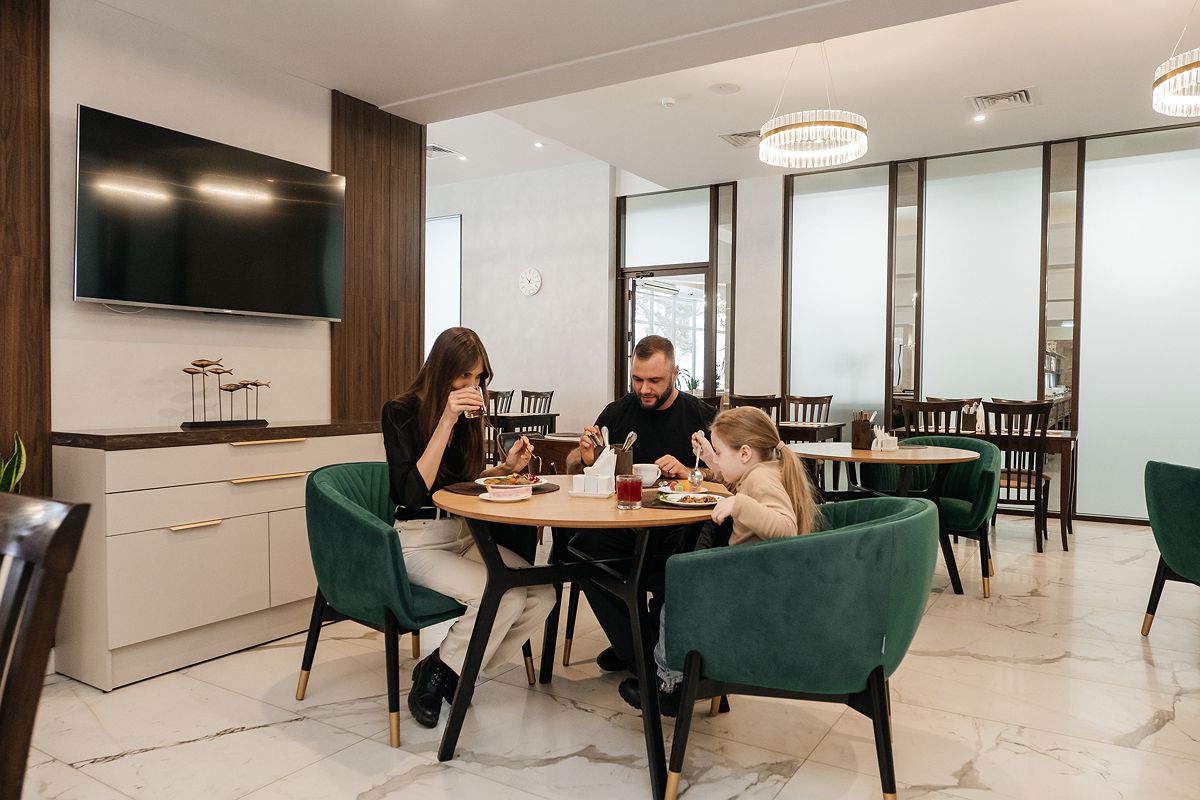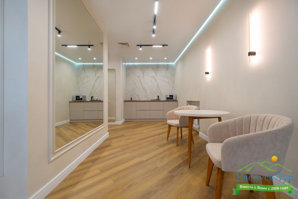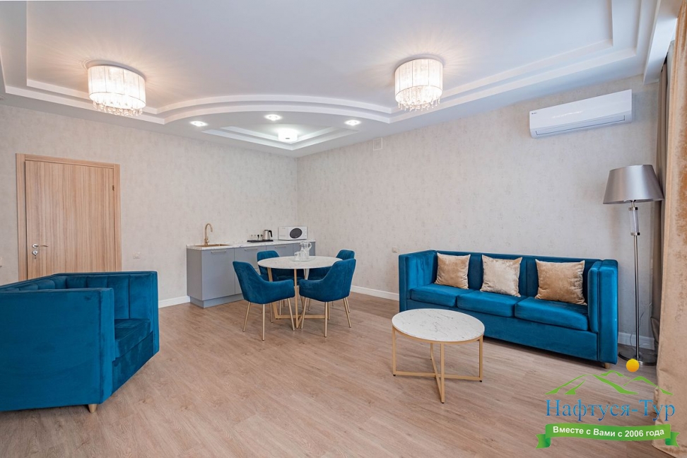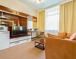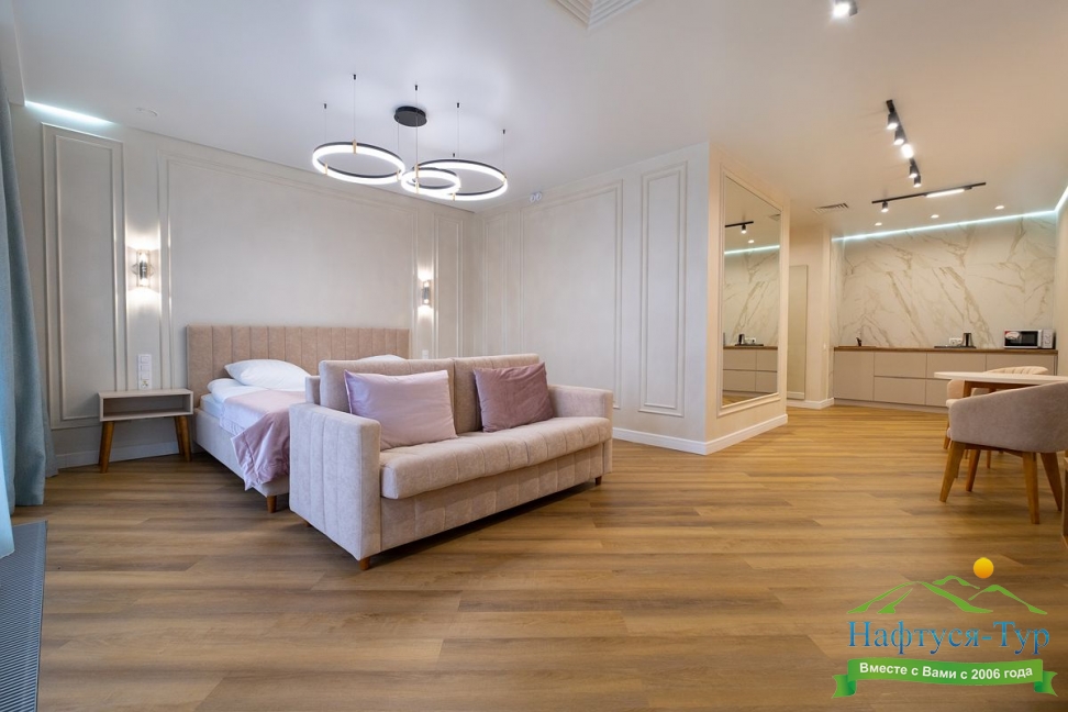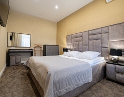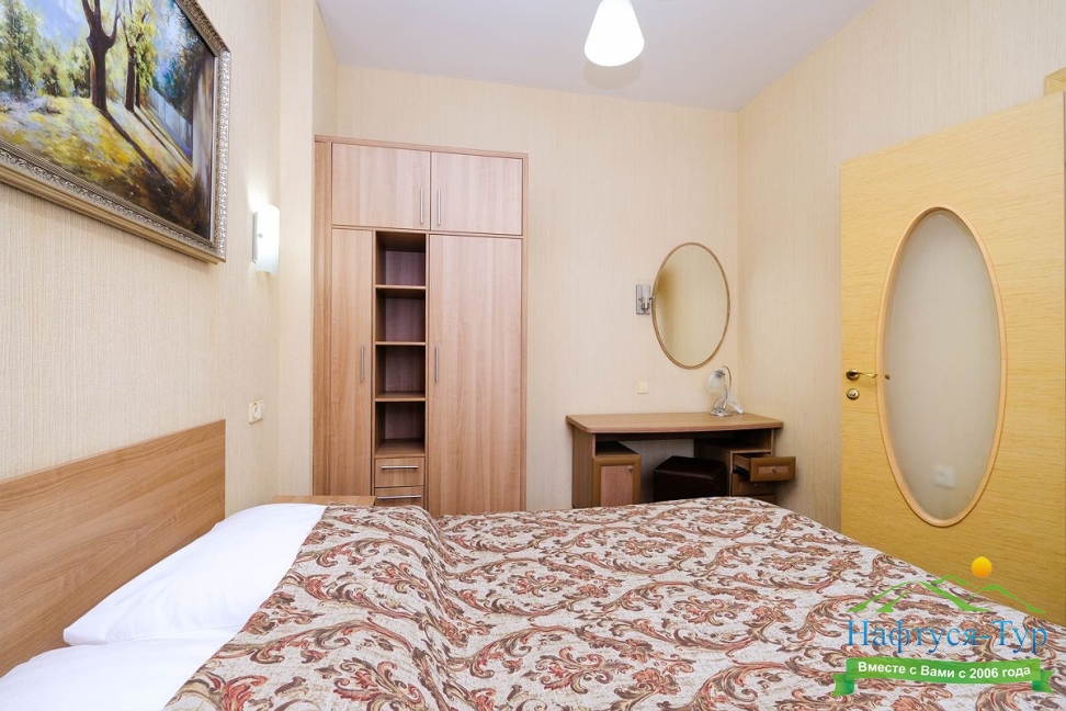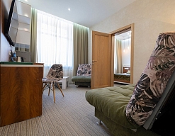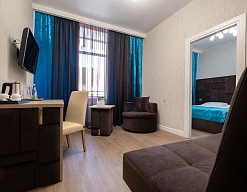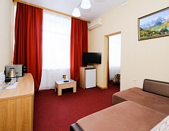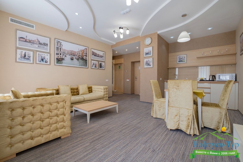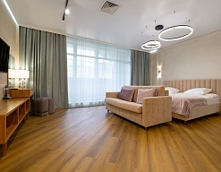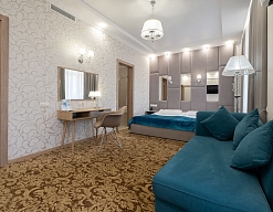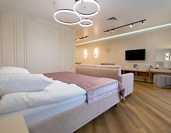 Номерной фонд санатория варьируется от уютных стандартных номеров до просторных люксов с панорамным видом на горы. Каждый номер оборудован всем необходимым для комфортного отдыха: мягкая мебель, теплые полы, современная сантехника, телевизор и бесплатный Wi-Fi.