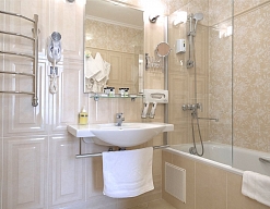 биде, с ванной или душевой кабиной, туалетные принадлежности, фен