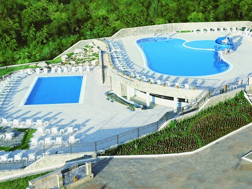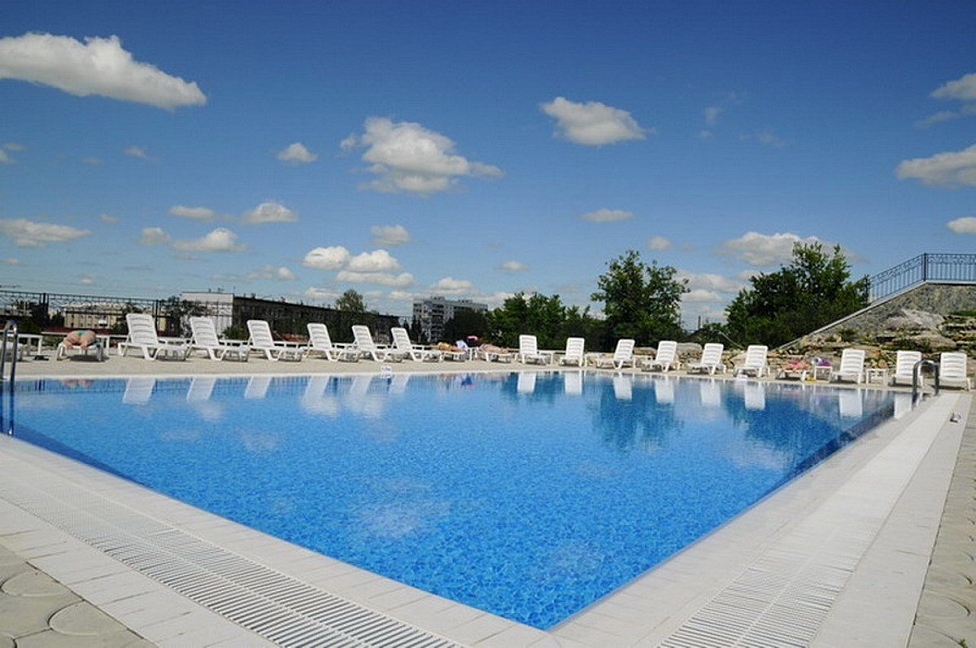 Бассейн открытый: расположен рядом со «Здравницей Кузбасса», общая площадь 600 кв. м, три чаши: 2 для взрослых, 1 для детей вода: пресная подогреваемый, пользование бассейном входит в стоимость.