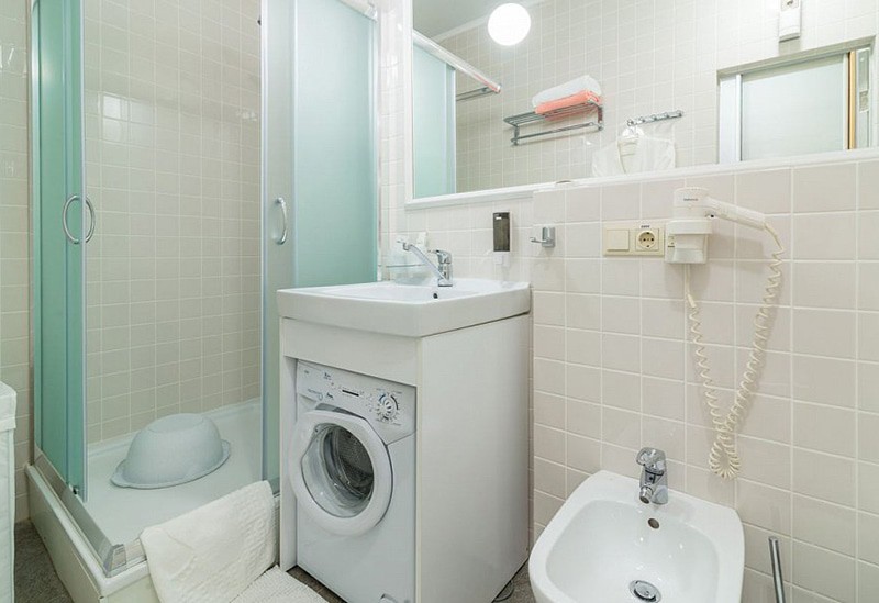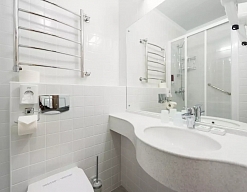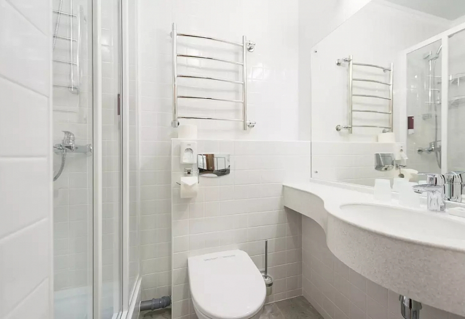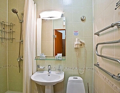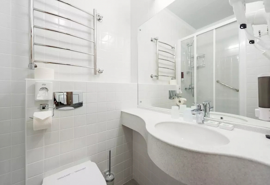 биде, с ванной, тапочки, туалетные принадлежности, фен, халат