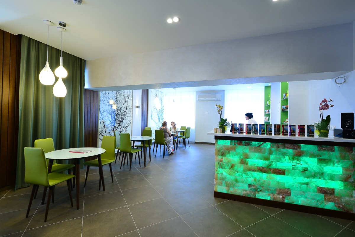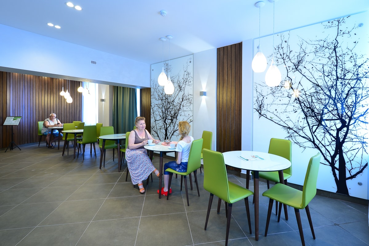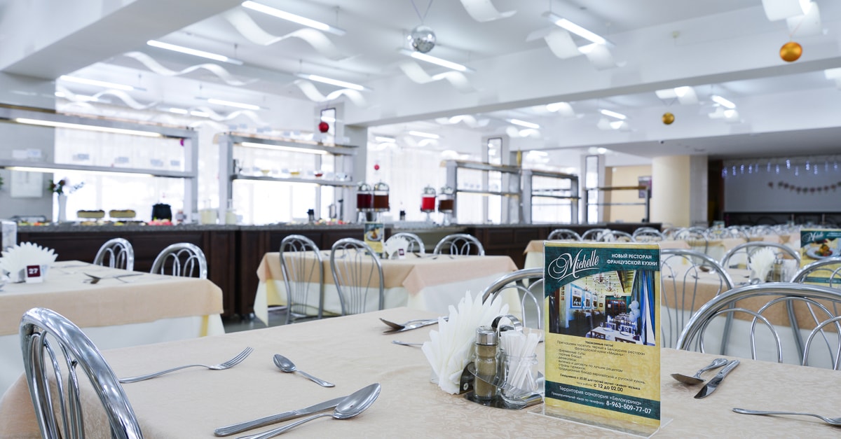 Ресторан санатория порадует гостей разнообразием блюд русской и европейской кухни, а в кафе и барах можно насладиться ароматным кофе и десертами.