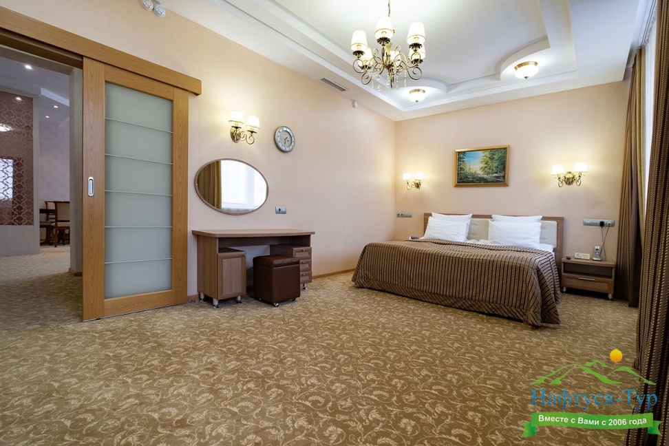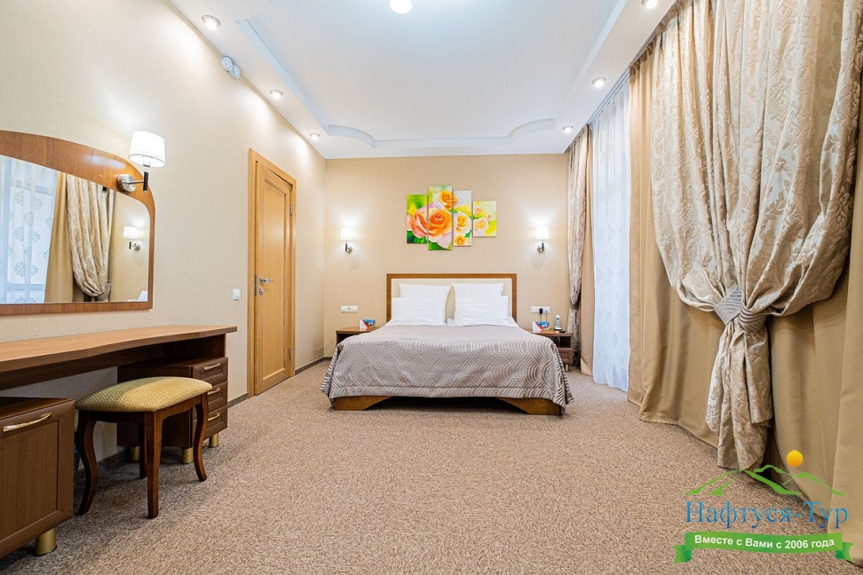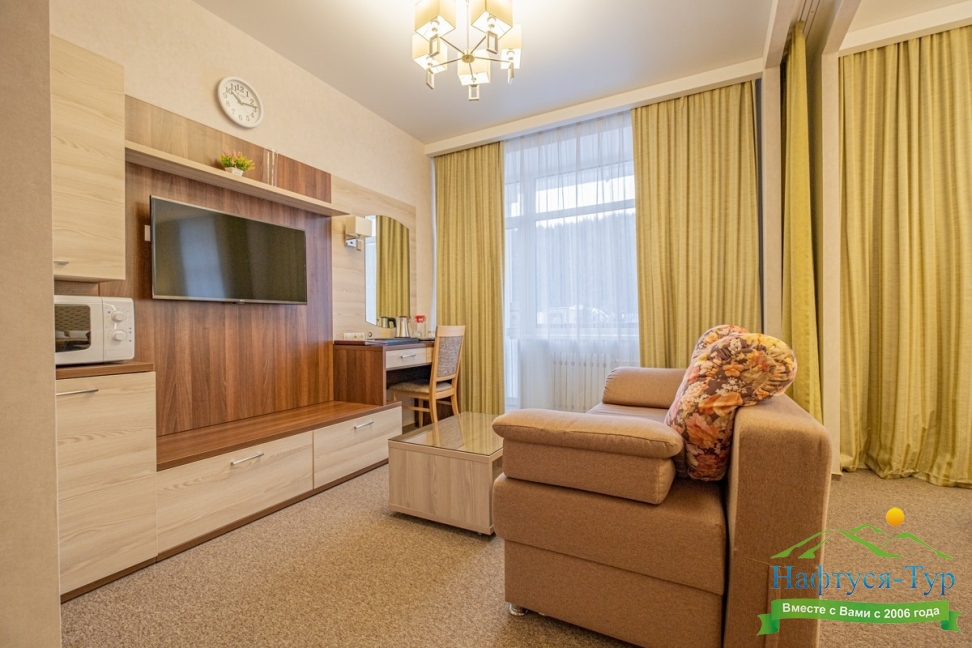 Номерной фонд санатория «Сибирь» Белокуриха предлагает различные варианты размещения: от экономичных стандартных номеров до роскошных апартаментов с панорамными видами на горы. В каждом номере созданы все условия для уютного отдыха: комфортабельная мебель, теплые полы, спутниковое ТВ и бесплатный Wi-Fi.